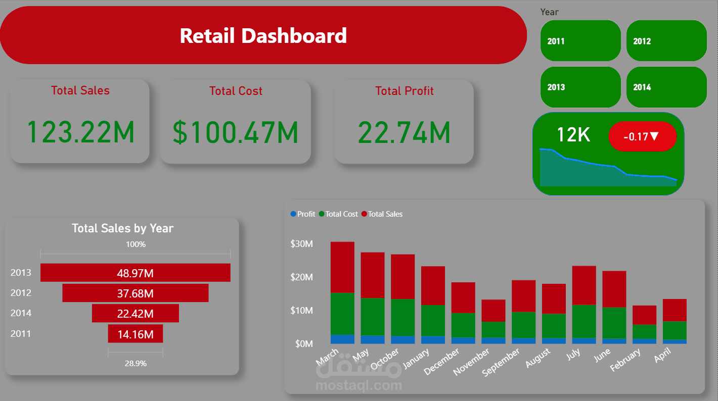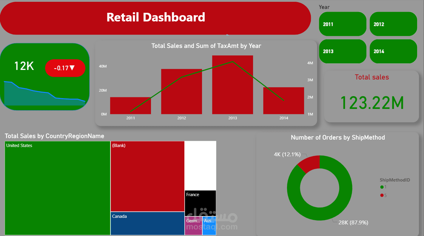 إنشاء مقاييس (Measures) باستخدام DAX لحساب مؤشرات الأداء الرئيسية مثل: إجمالي المبيعات، نسبة الأرباح، أفضل العملاء، أفضل المناطق، ومعدلات المرتجعات.