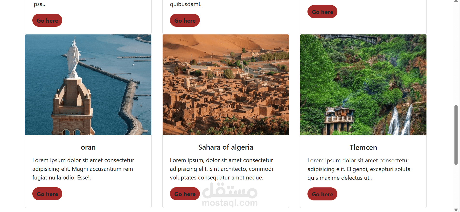 تم صنع هذا الموقع لامكانية السياح من التعرف على مختلف البلدان داخل الجزائر ومعرفة طرق وكيفية التنقل داخلها مع صور تعبيرية لجذب الزوار بامكاني حجز السفر اليها