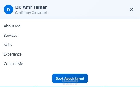 الموقع يقدم واجهة حديثة ومتجاوبة تعرض نبذة تعريفية، التخصصات والخدمات الطبية، الخبرة والشهادات، بالإضافة إلى بيانات التواصل. التصميم يتميز بالبساطة، السرعة، وتجربة مستخدم سلسة على جميع الأجهزة.