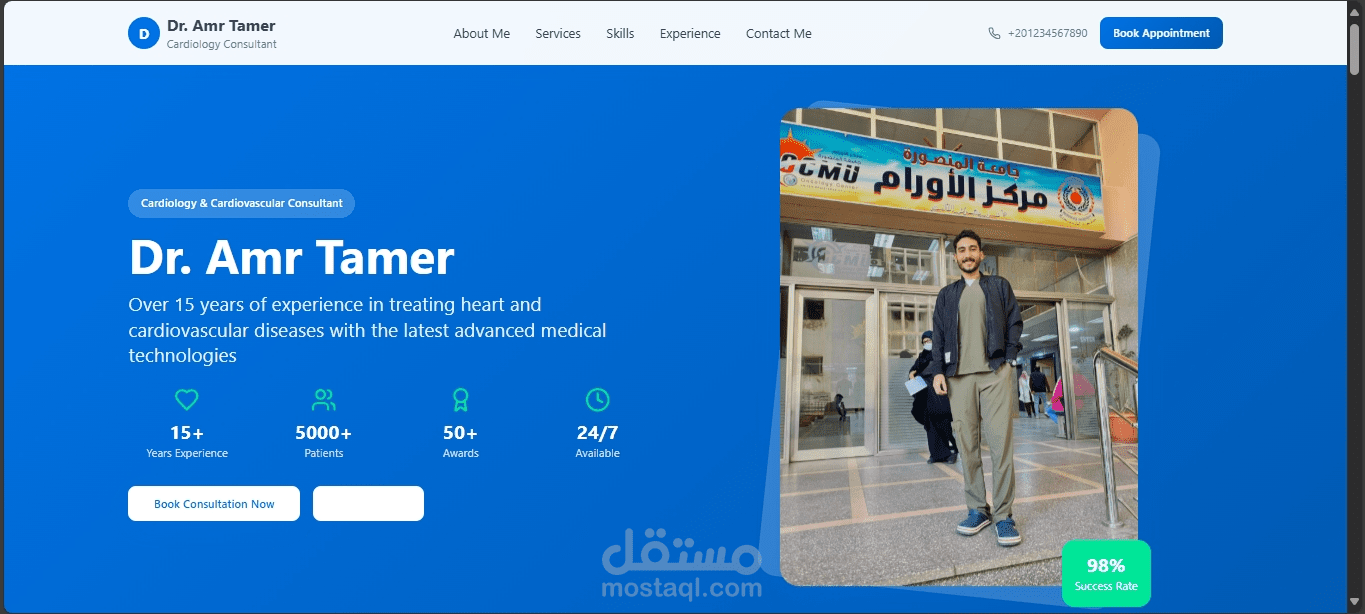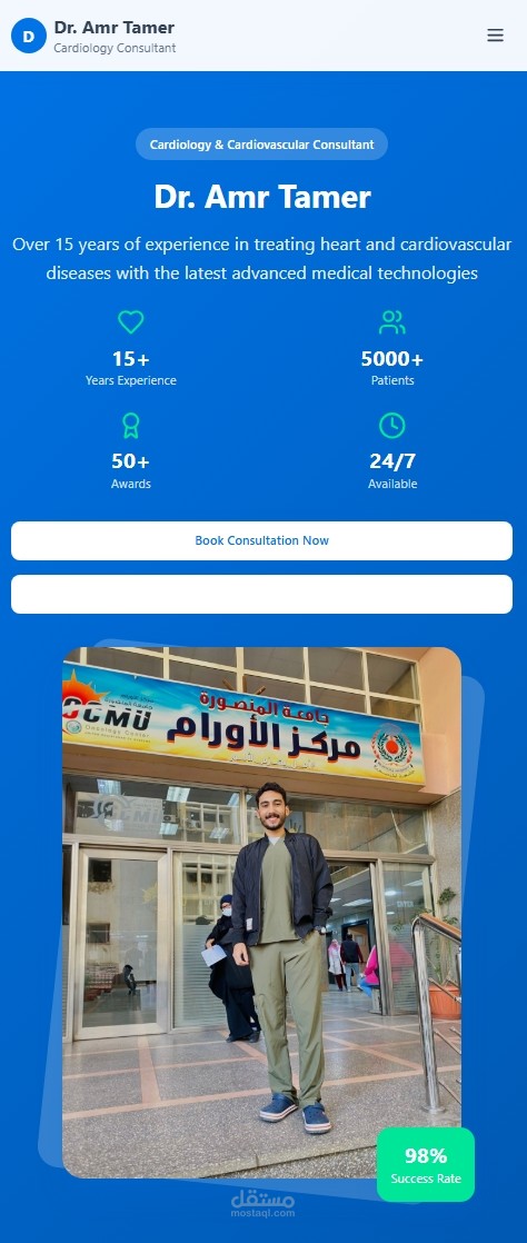 موقع شخصي/طبي للدكتور عمرو تامر (استشاري القلب والأوعية الدموية) مبني باستخدام React (TypeScript/TSX) مع Tailwind CSS.