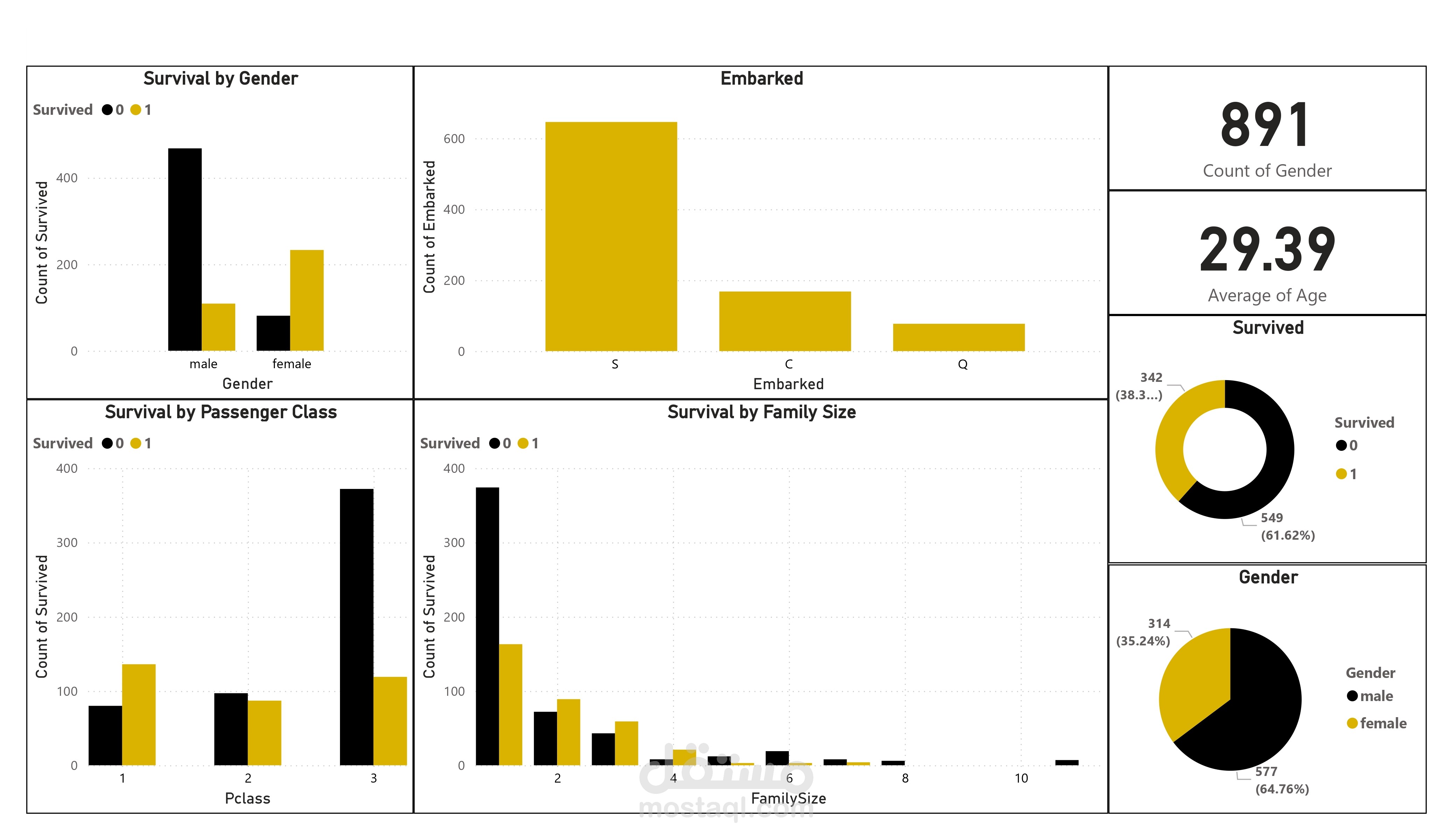 قمت بتحليل بيانات Titanic Dataset باستخدام Power BI بهدف توضيح العوامل المؤثرة في نسب النجاة للركاب.