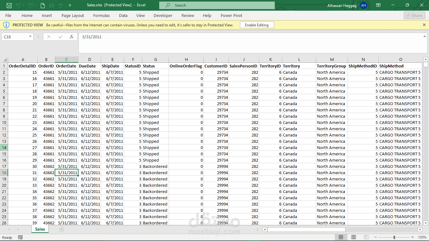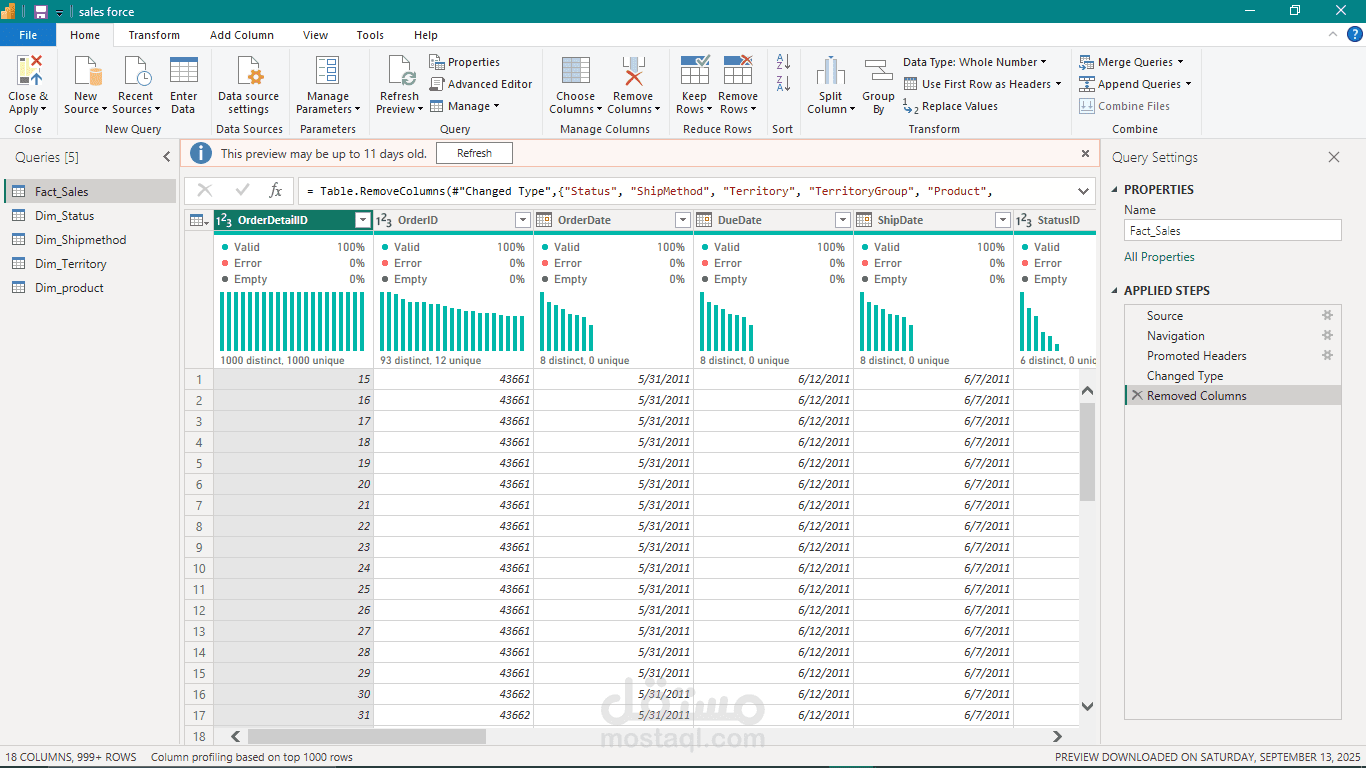 1. استيراد وتنظيف البيانات: تم جلب بيانات المبيعات عبر Power Query في Power BI، مع تنظيف البيانات وإعدادها للتحليل.