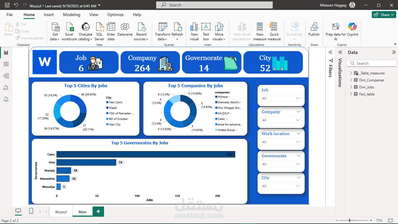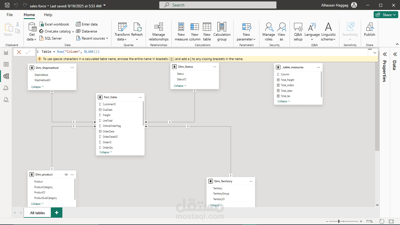 3. إنشاء Measures: تم تطوير Measures لحساب المؤشرات الرئيسية مثل: