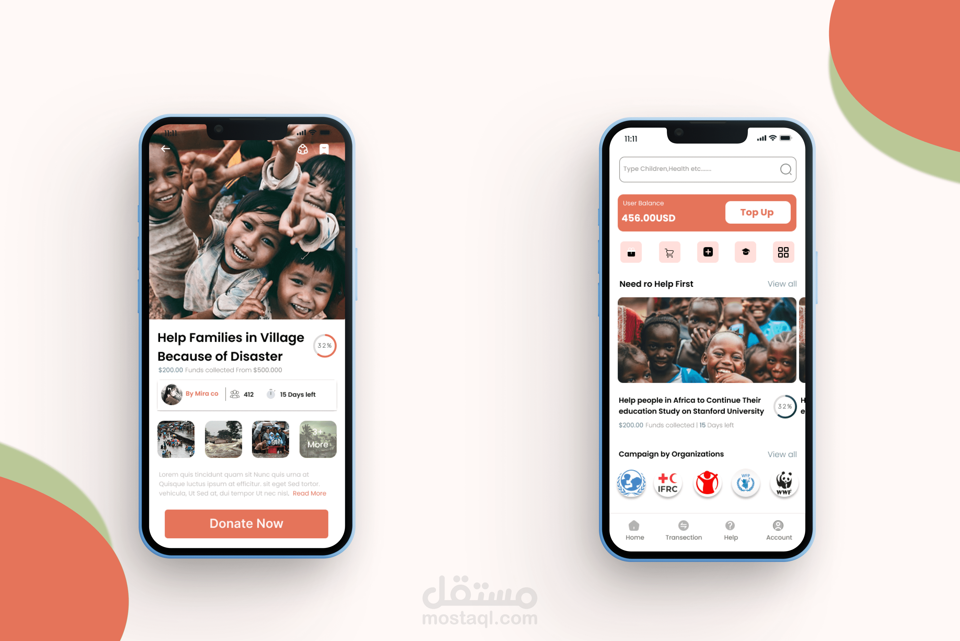 تصميم نظيف يعتمد على التباين بين الأبيض والألوان الدافئة (البرتقالي والأخضر الفاتح) لإضفاء طابع مبهج ومريح.