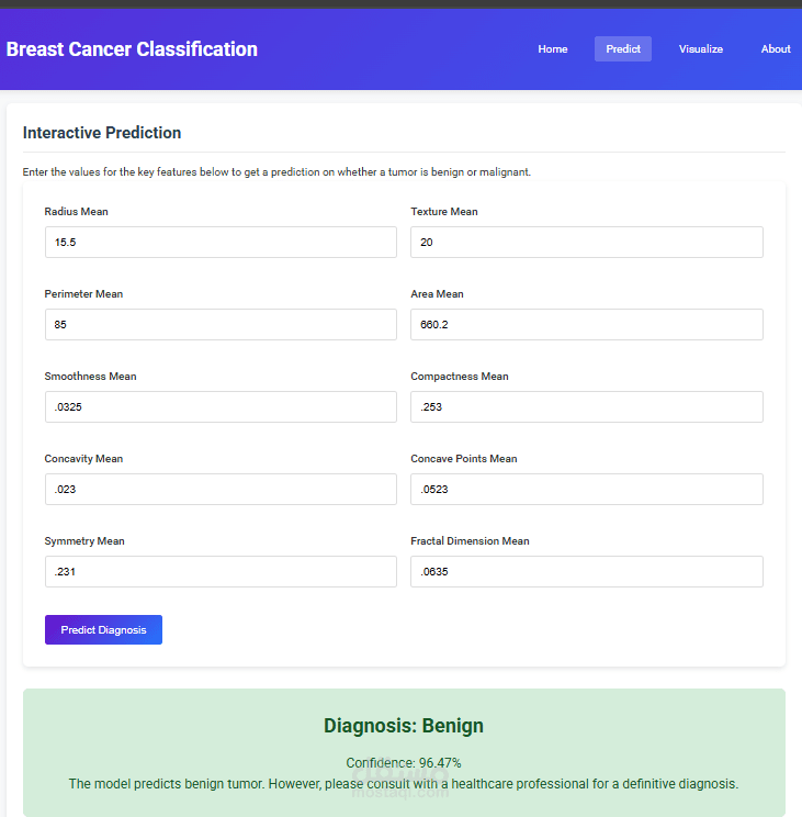 يحلل هذا المشروع مجموعة بيانات تشخيص سرطان الثدي بهدف تصنيف الأورام إلى حميدة أو خبيثة باستخدام خوارزميات التعلم الآلي. تحتوي مجموعة البيانات على خصائص مستخرجة من صور رقمية لكتل في الثدي، تصف سمات نوى الخلايا الظاهرة في الصور. يقوم المشروع بتطبيق كلٍّ من خوارزمية آلات الدعم向 (SVM) والشبكات العصبية متعددة الطبقات (MLP) لتحقيق دقة عالية في التنبؤ بالتشخيص.