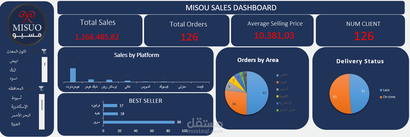 To make these insights clear and practical, I built interactive dashboards that allowed management to explore data dynamically, compare performance across regions and products, and track delivery efficiency in real time.