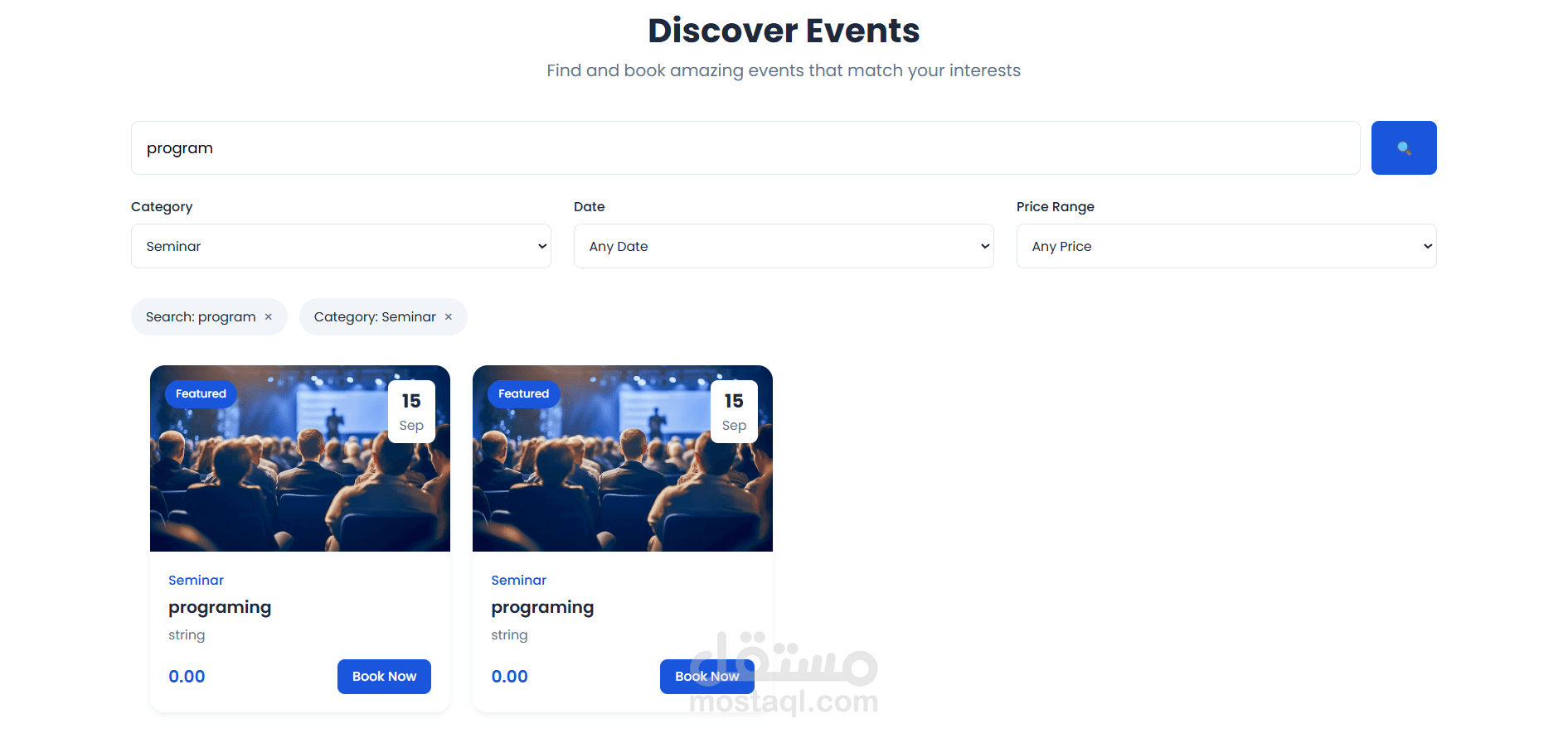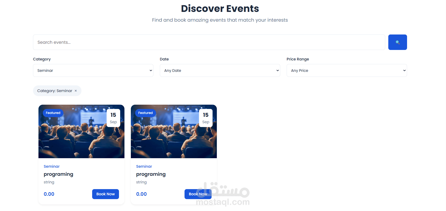 استعراض الفعاليات المتاحة.