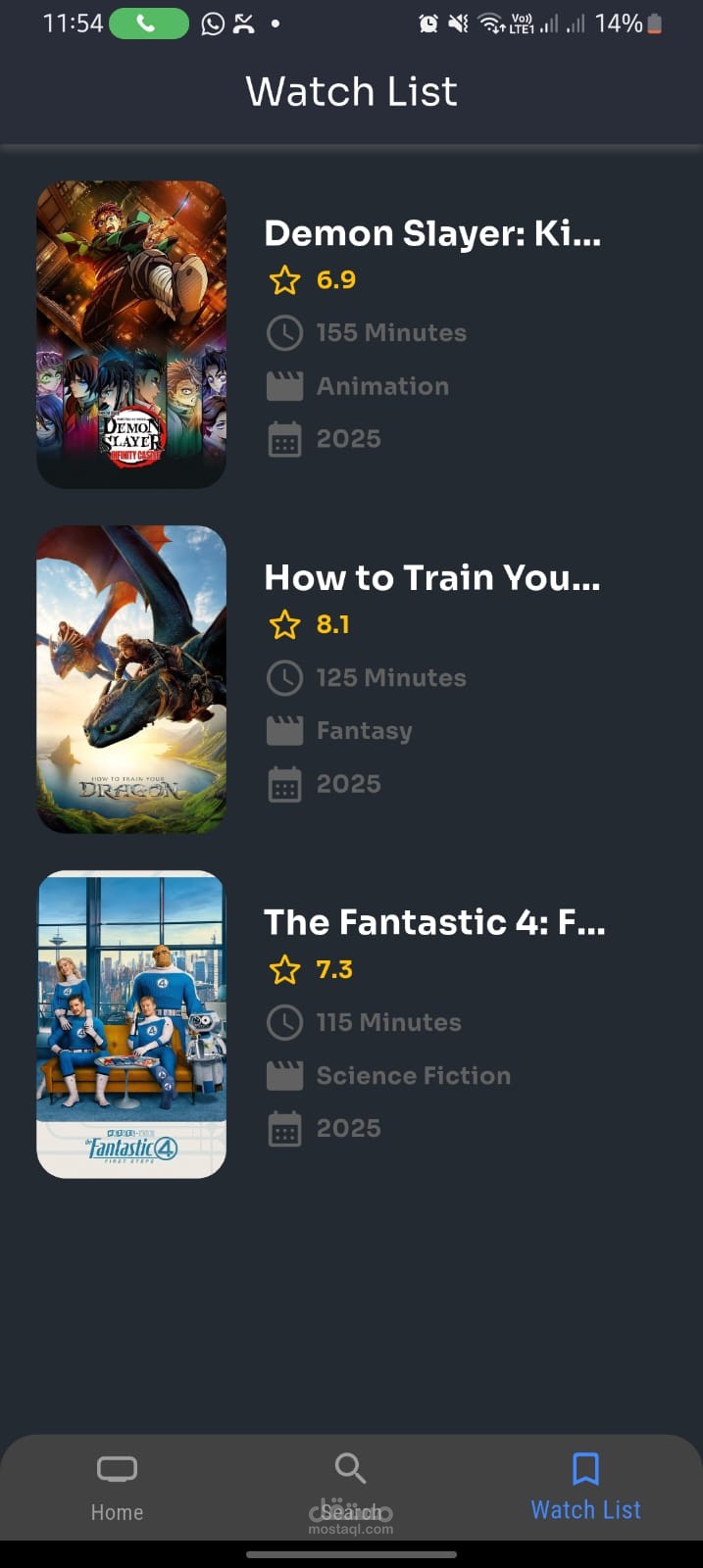 A mobile application that allows users to browse and discover movies with detailed information such as posters, ratings, and descriptions. The app features a clean and responsive UI, smooth navigation, and dynamic content powered by RESTful API integration. State management (setState / Bloc) was implemented to ensure seamless performance and an engaging user experience.