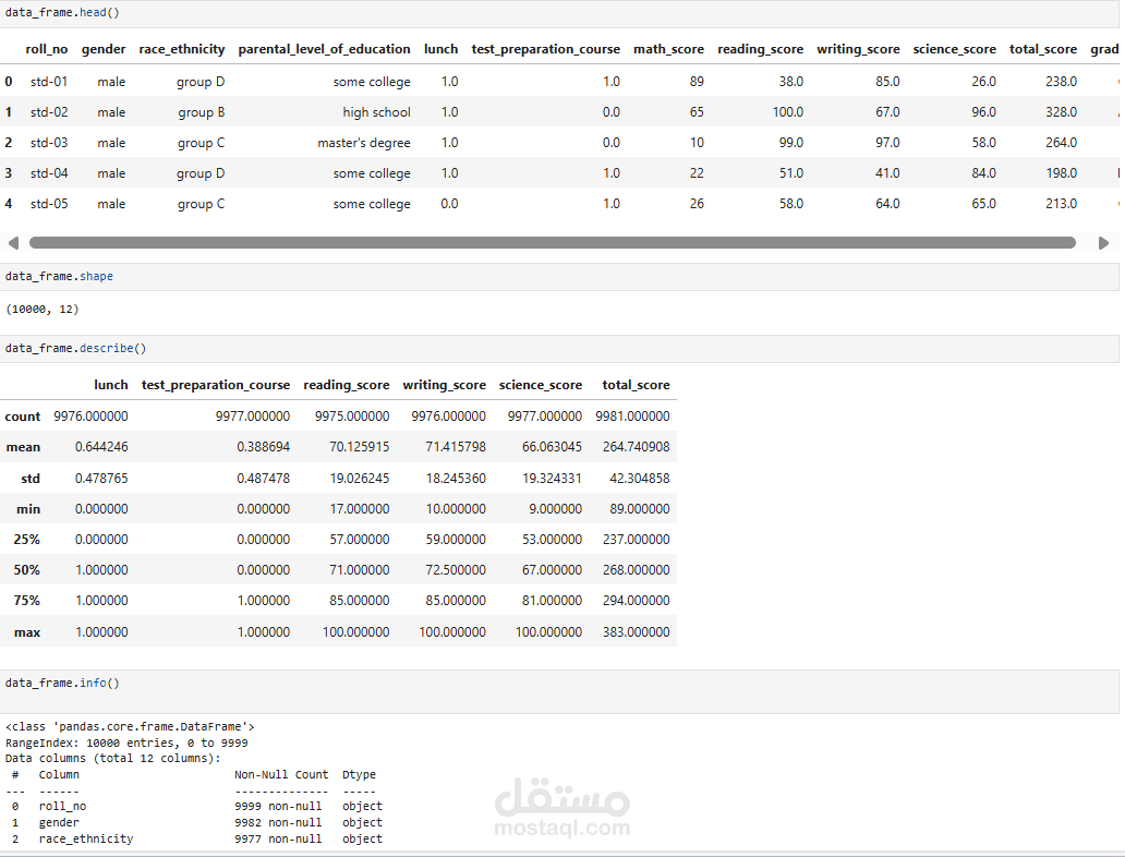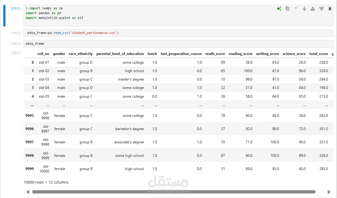 This project focuses on analyzing student performance using Python and its powerful data analysis libraries (Pandas, NumPy, and Matplotlib). The goal was to understand the factors that influence academic results and provide insights that could help educators and students improve learning outcomes.