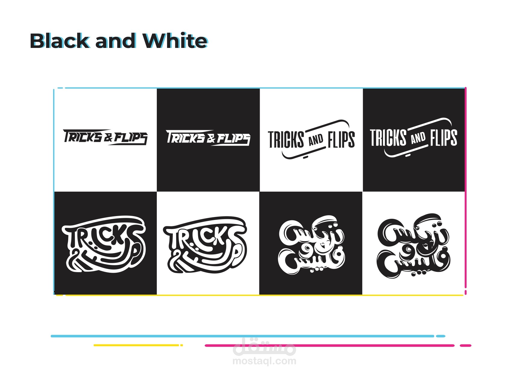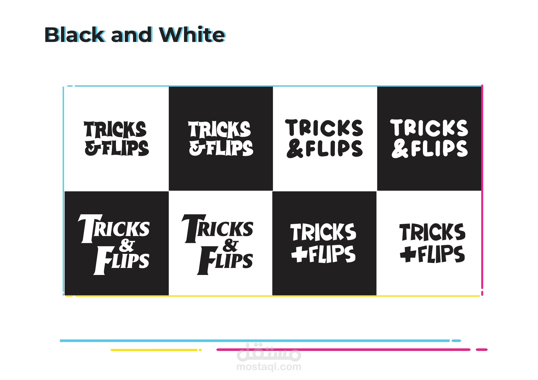 هذا المشروع عبارة عن تصميم تجريبي)Concept Project(لمشروع تصميم شعار Wordmark Logo لماركة Tricks and Flips، وهي علامة تجارية متخصصة في بيع الأدوات الرياضية الخاصة برياضة الـ Skating.