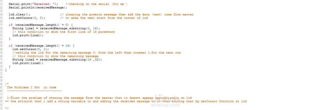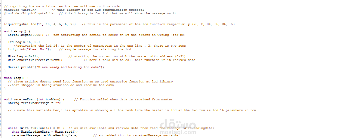 يقوم هذا الكود بتهيئة شاشة الـ LCD وبروتوكول I2C على نفس العنوان 0x31.