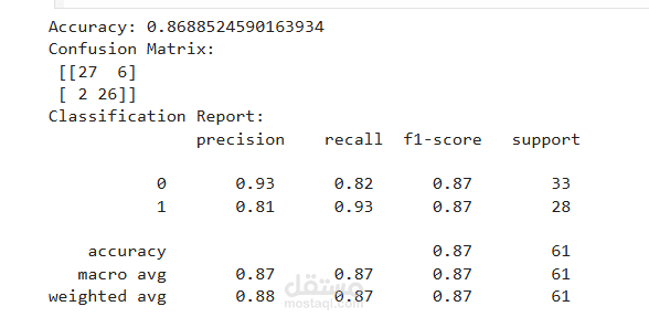 تطبيق عدة خوارزميات تصنيف مثل: Logistic Regression, Random Forest, و KNN.