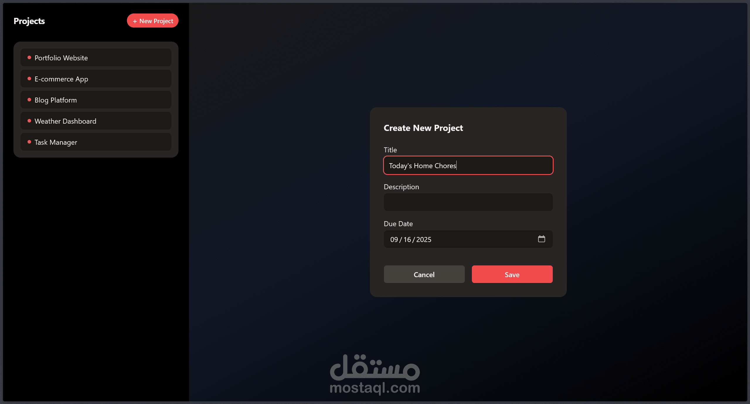 A modern, dark-themed project and task management app built with React and Tailwind CSS.