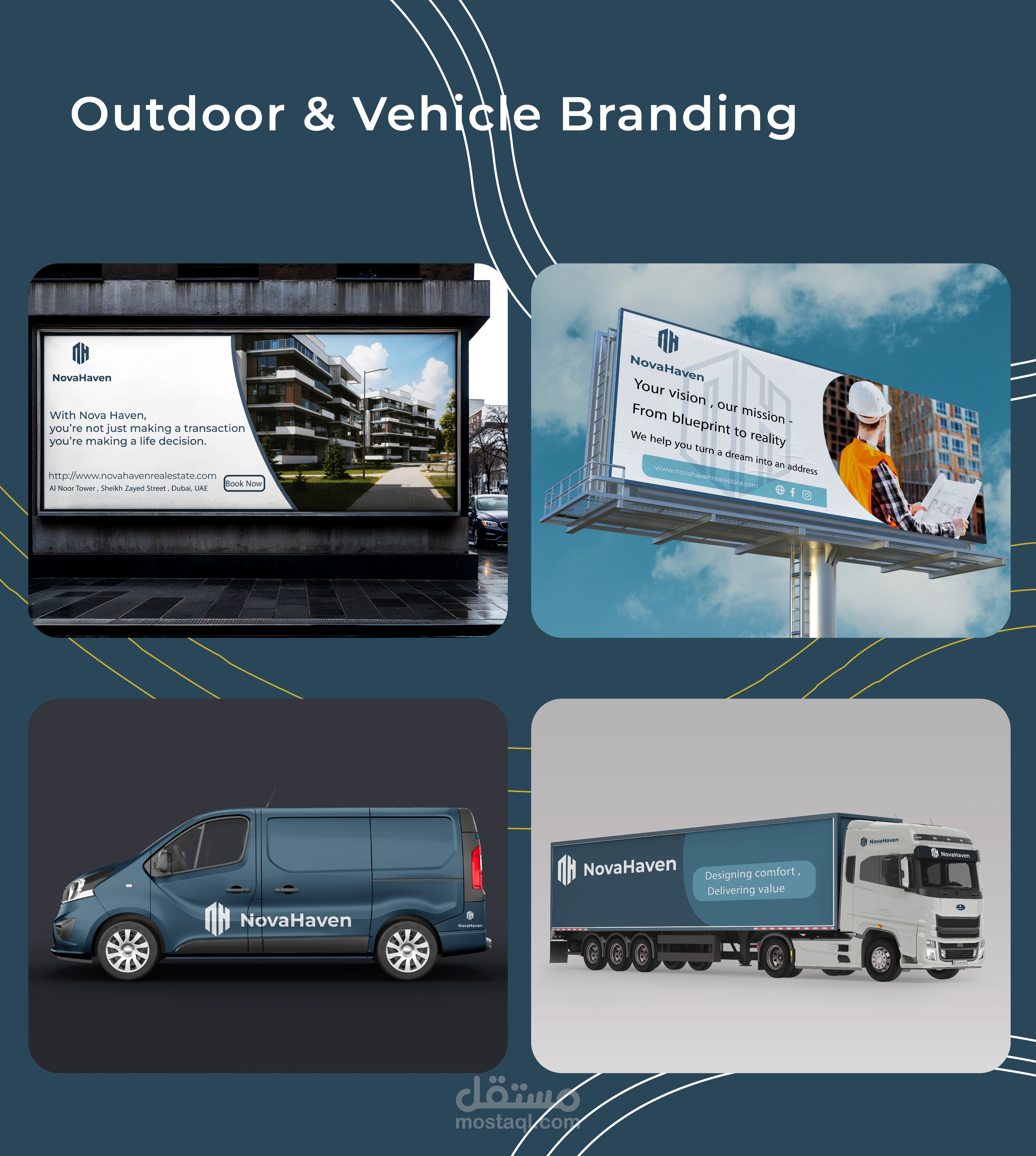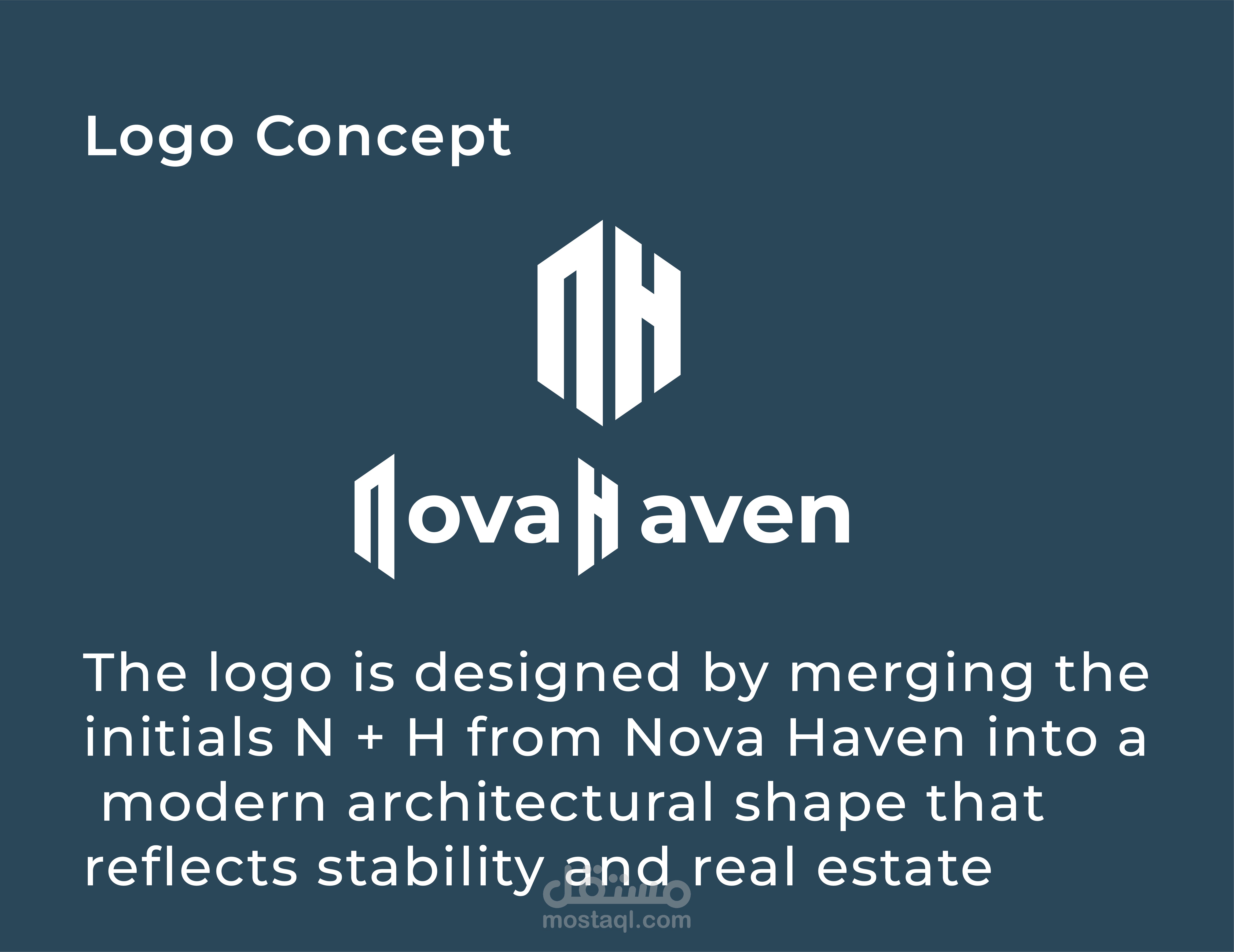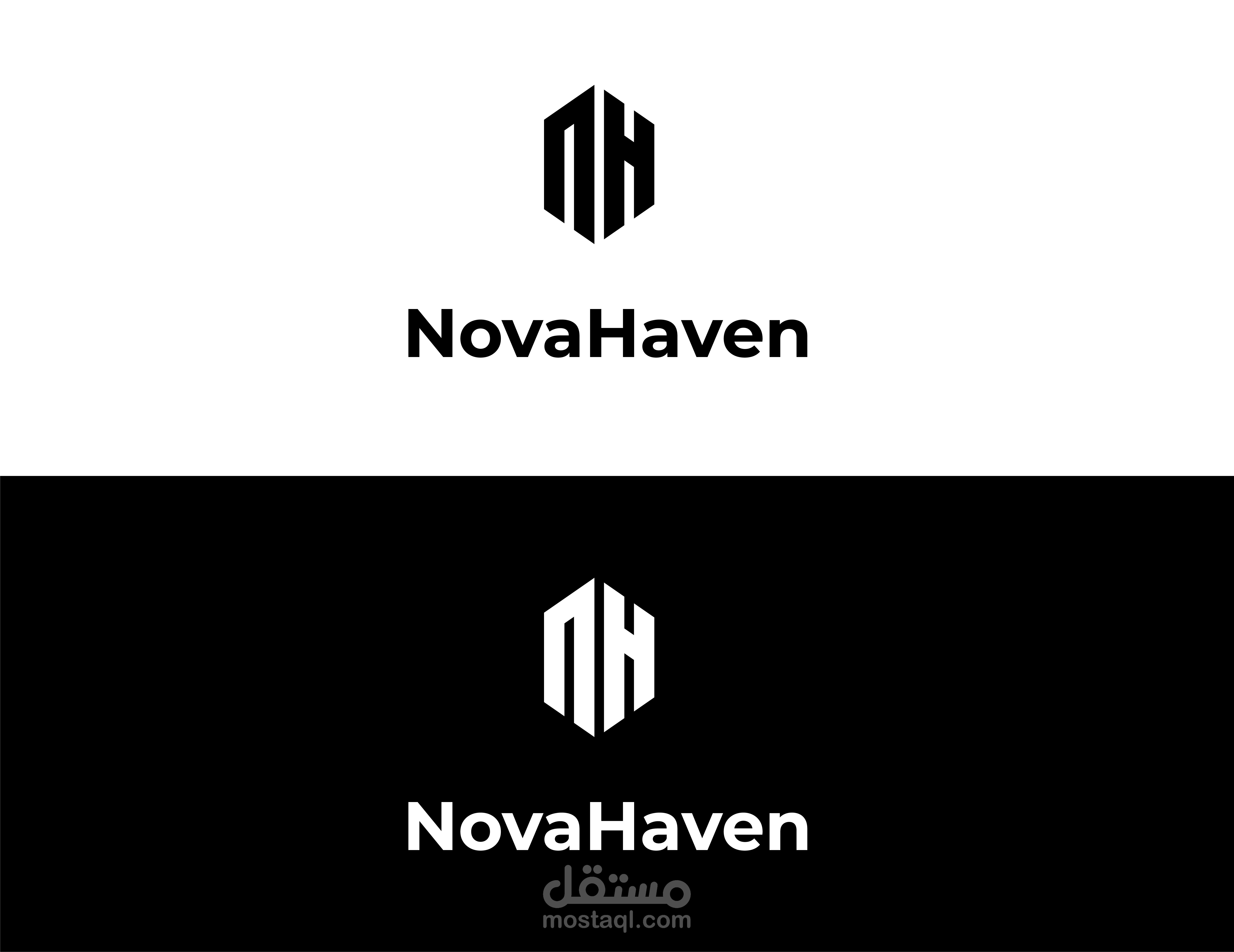 صمّمتُ شعارًا وهوية بصرية متكاملة لشركة العقارات Novahaven، بهوية راقية واحترافية تعبّر عن الثقة والفخامة في مجال الاستثمار العقاري.