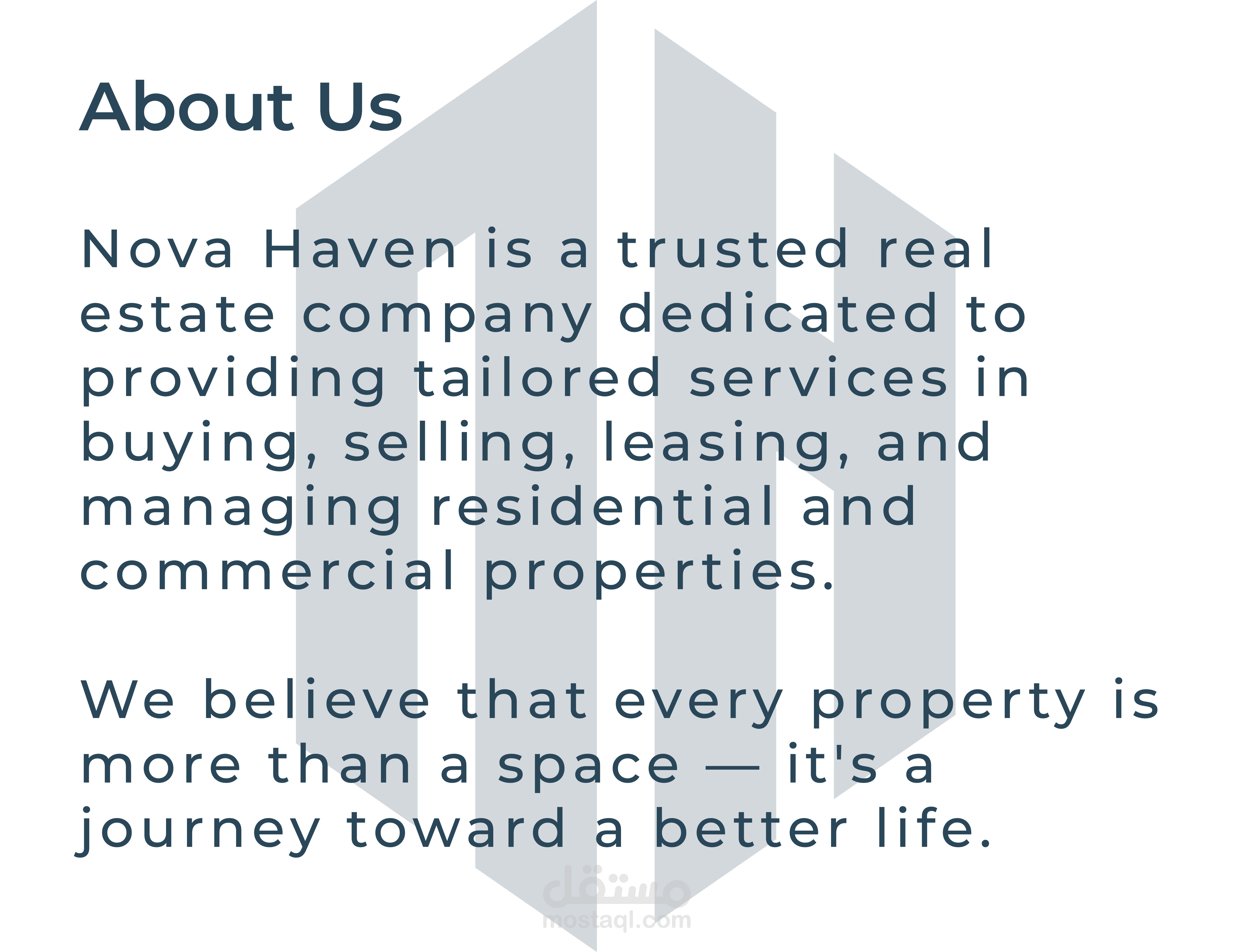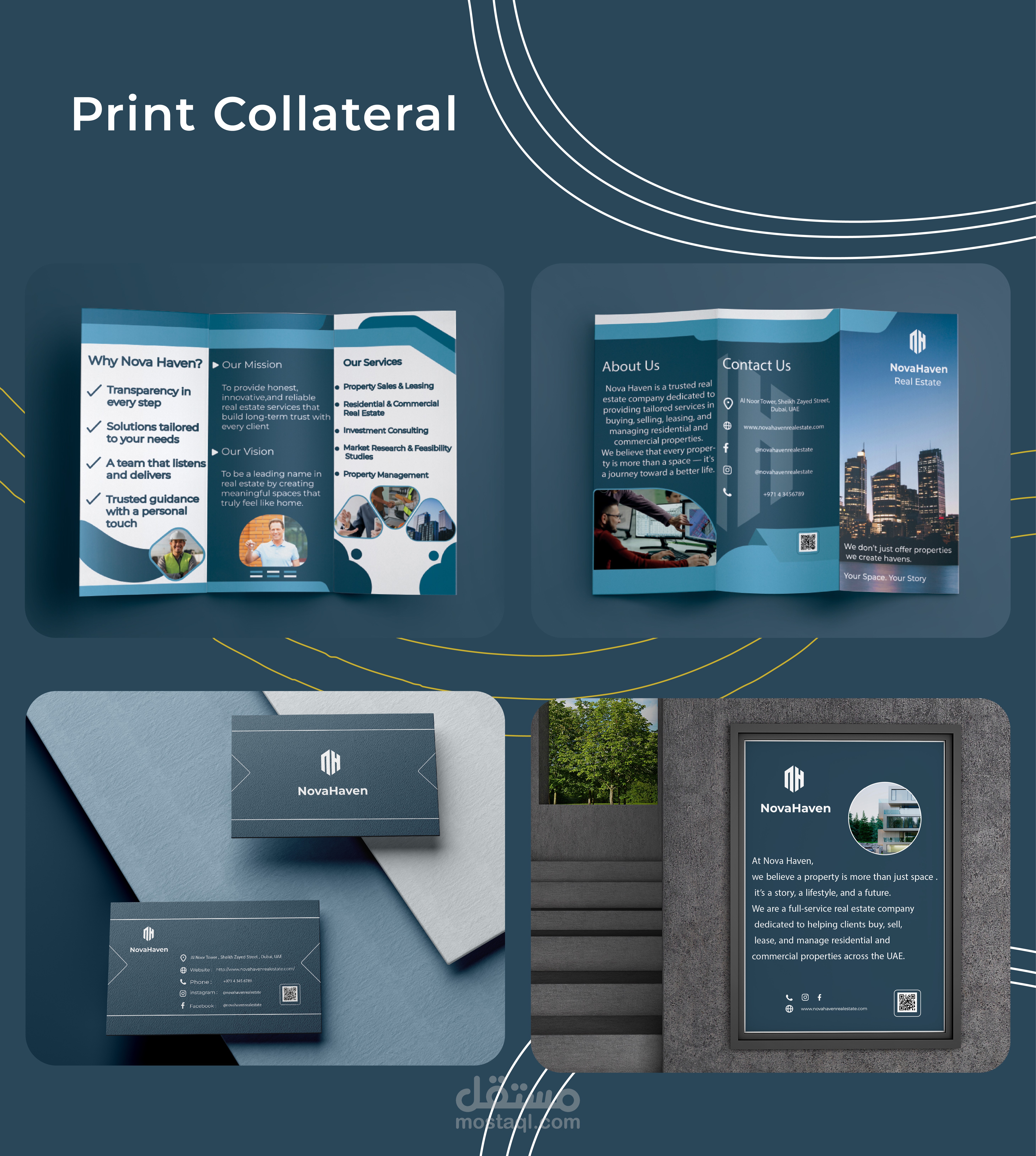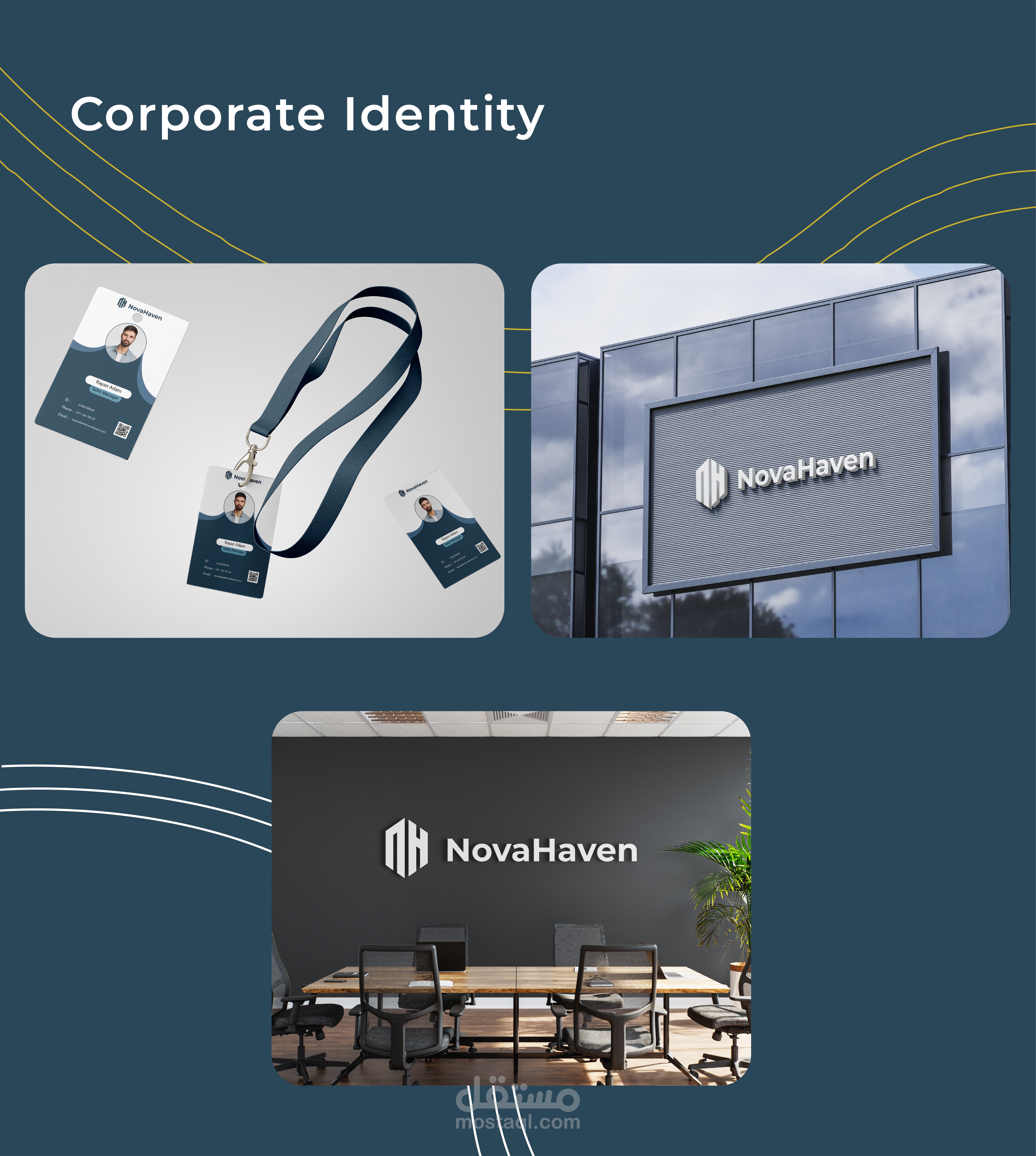 صمّمتُ شعارًا وهوية بصرية متكاملة لشركة العقارات Novahaven، بهوية راقية واحترافية تعبّر عن الثقة والفخامة في مجال الاستثمار العقاري.