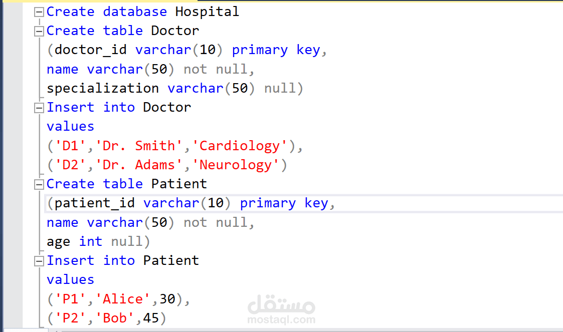 - استخدام JOINs لربط الجداول واستخراج بيانات مترابطة.
