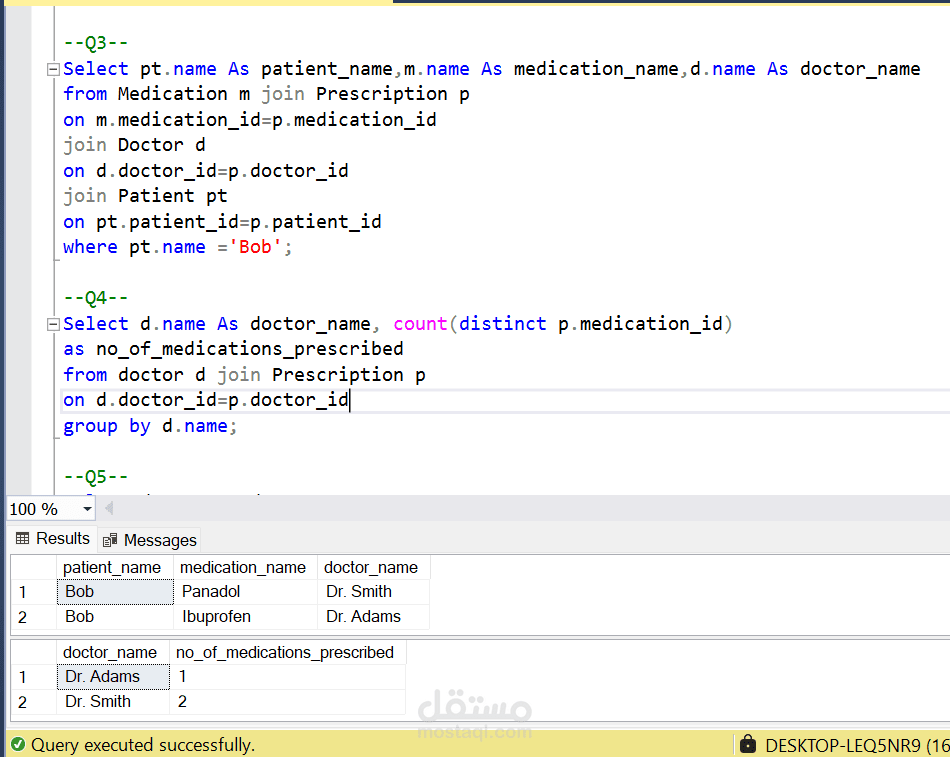 - إنشاء استعلامات تحليلية باستخدام Aggregation (COUNT, SUM, AVG, DISTINCT ...)..