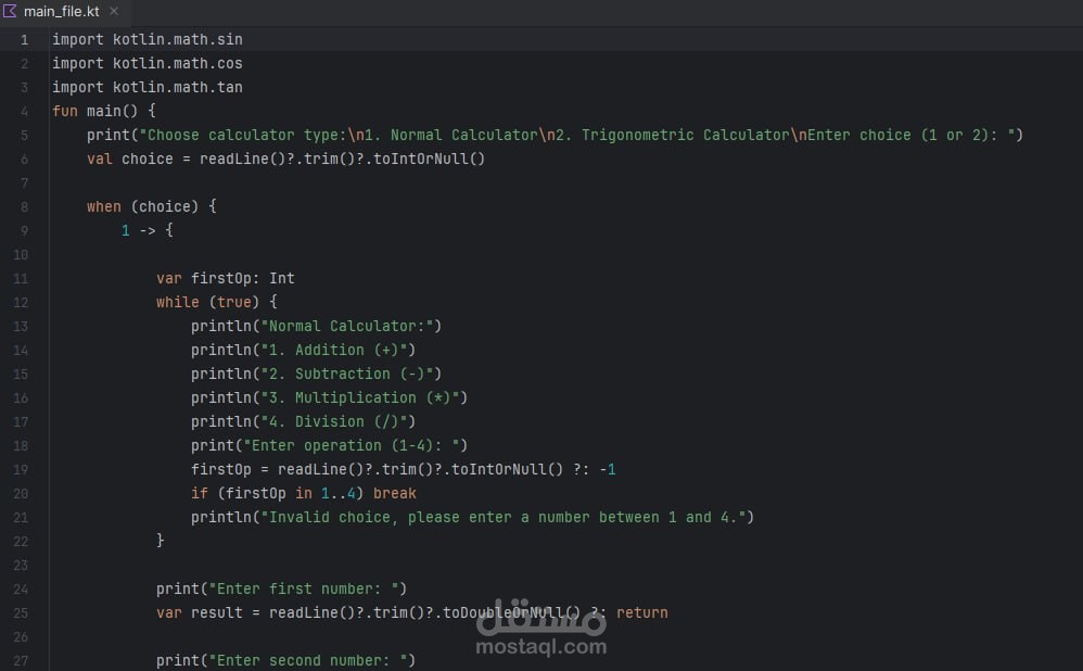تطبيق آلة حاسبة تفاعلي (Console Application) بلغة Kotlin.