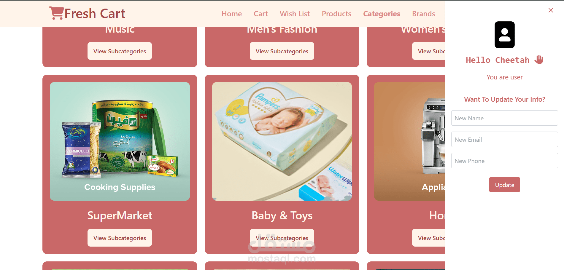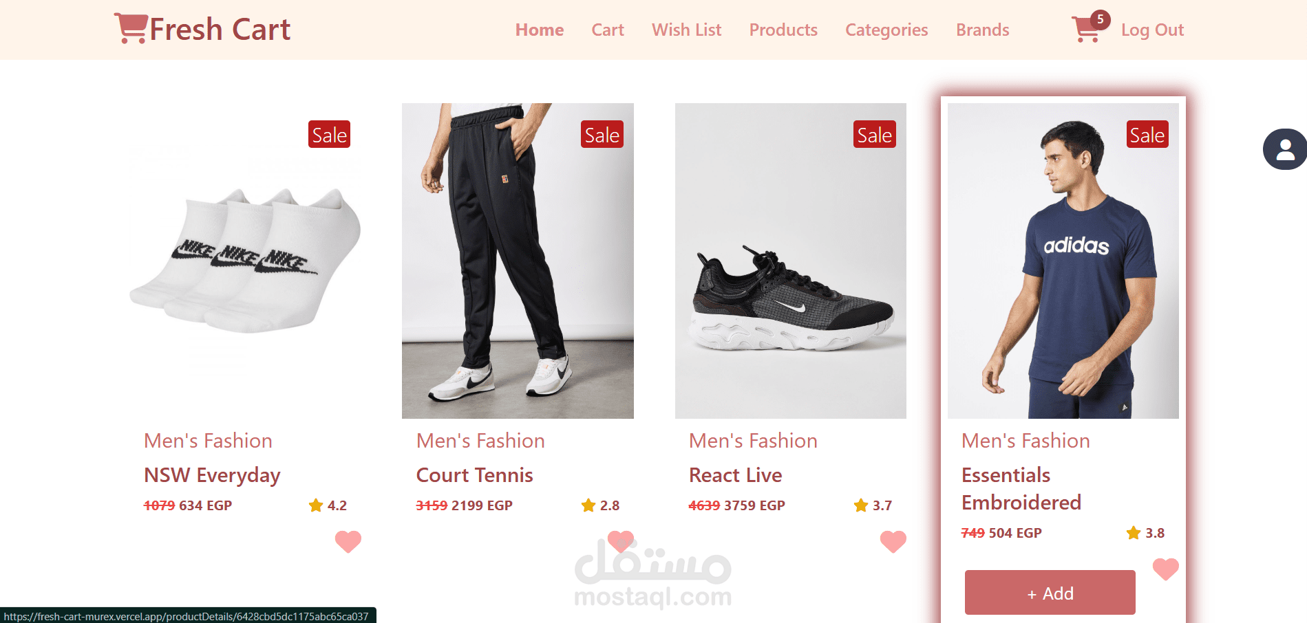 A modern and responsive e-commerce frontend built with React.js, featuring user authentication, cart & wishlist management, and a sleek, mobile-friendly UI. Highlights include protected routes, smooth animations, and real-time notifications, showcasing my skills in building interactive and user-focused web applications.