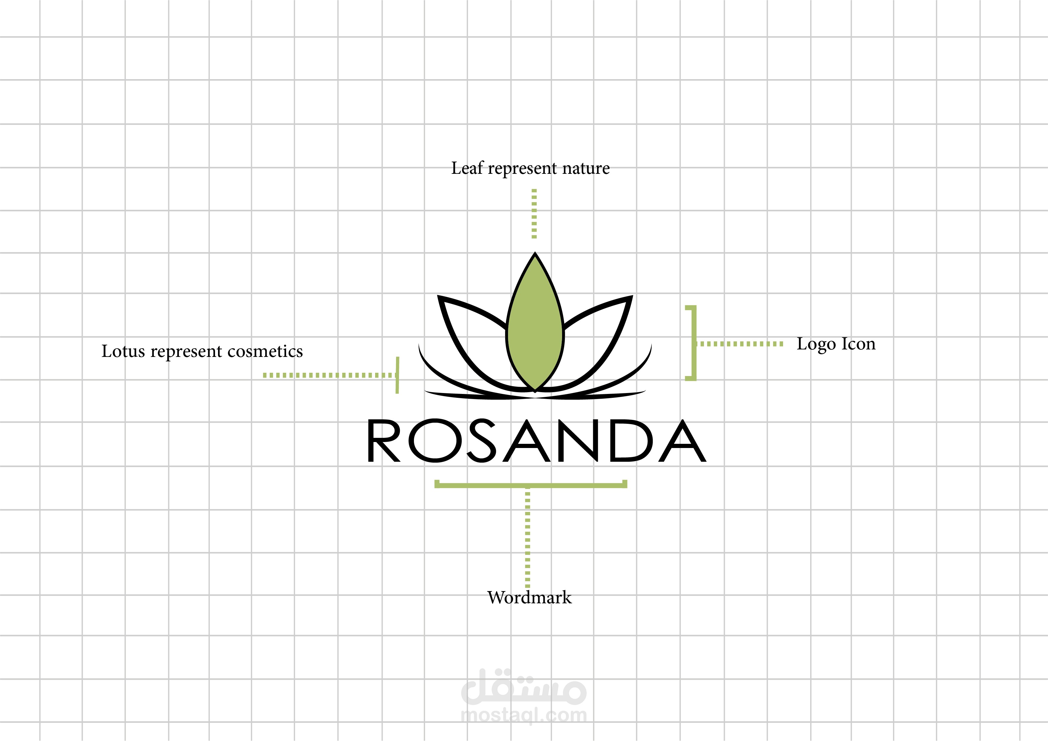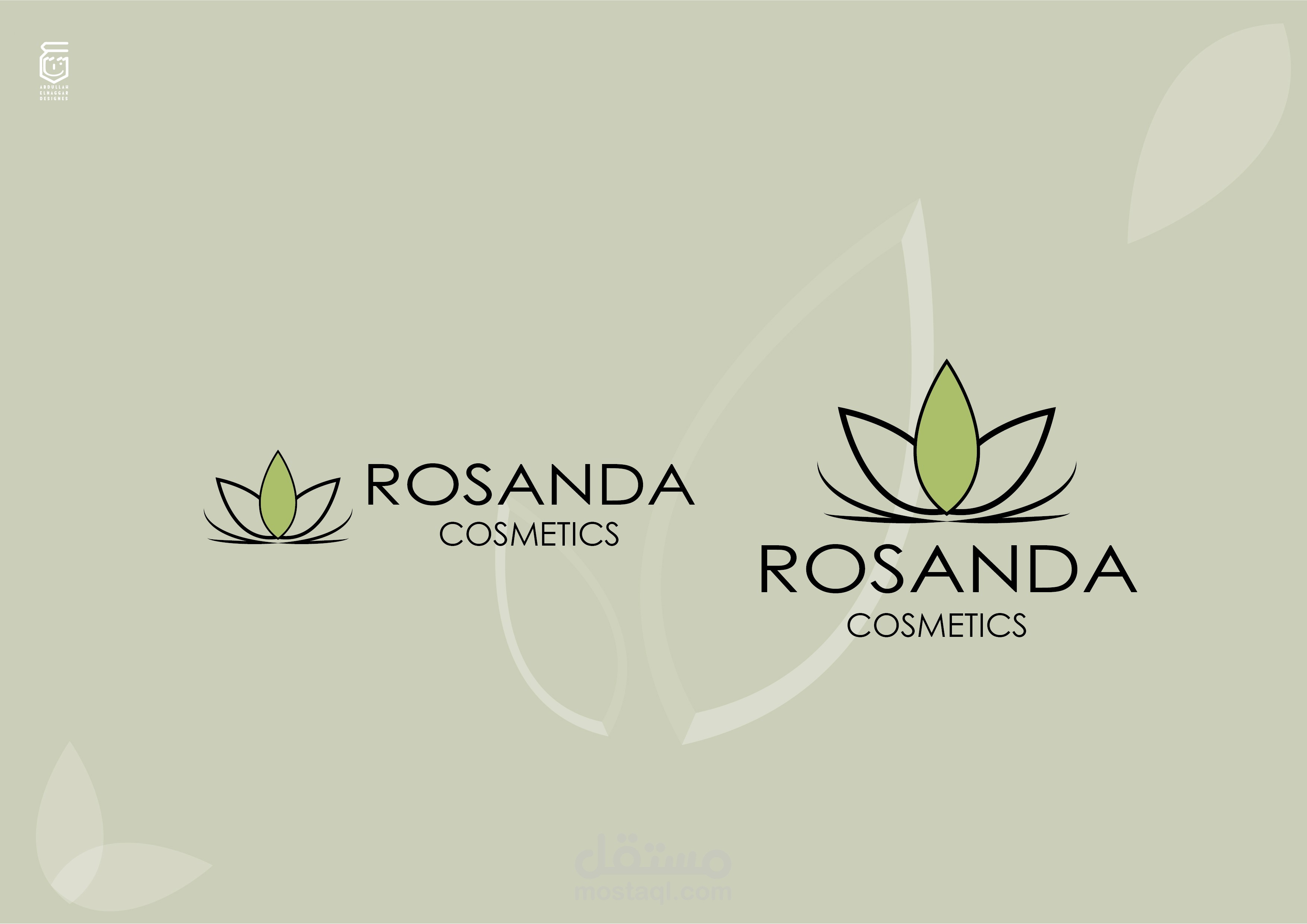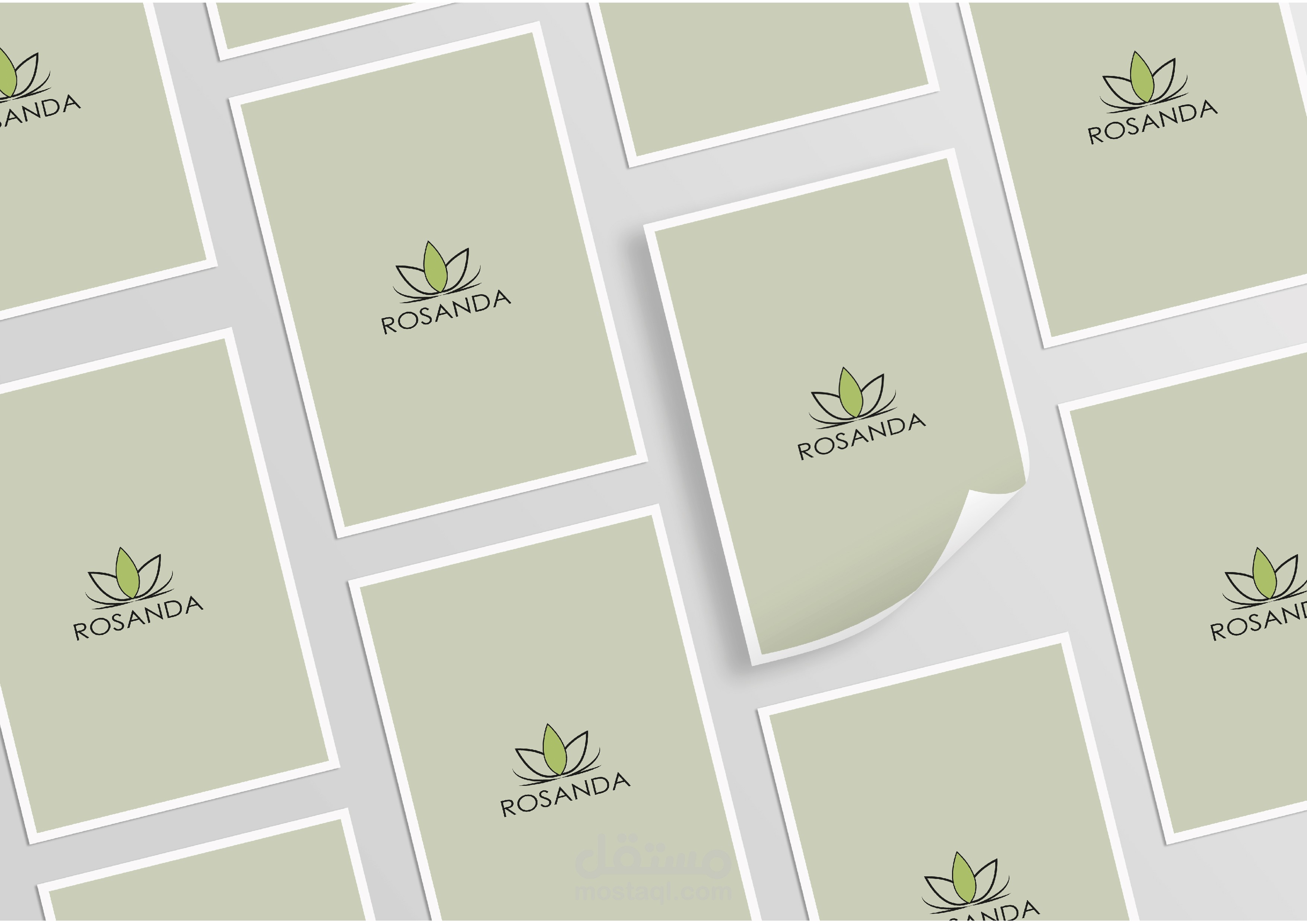 الهوية البصرية لشركة ROSANDA تجسد مفهوم الجمال الطبيعي من خلال عناصر بصرية واضحة (اللوتس + الورقة الخضراء) وألوان أنيقة، لتمنح العلامة حضورًا مميزًا يجمع بين الفخامة و الطبيعة.