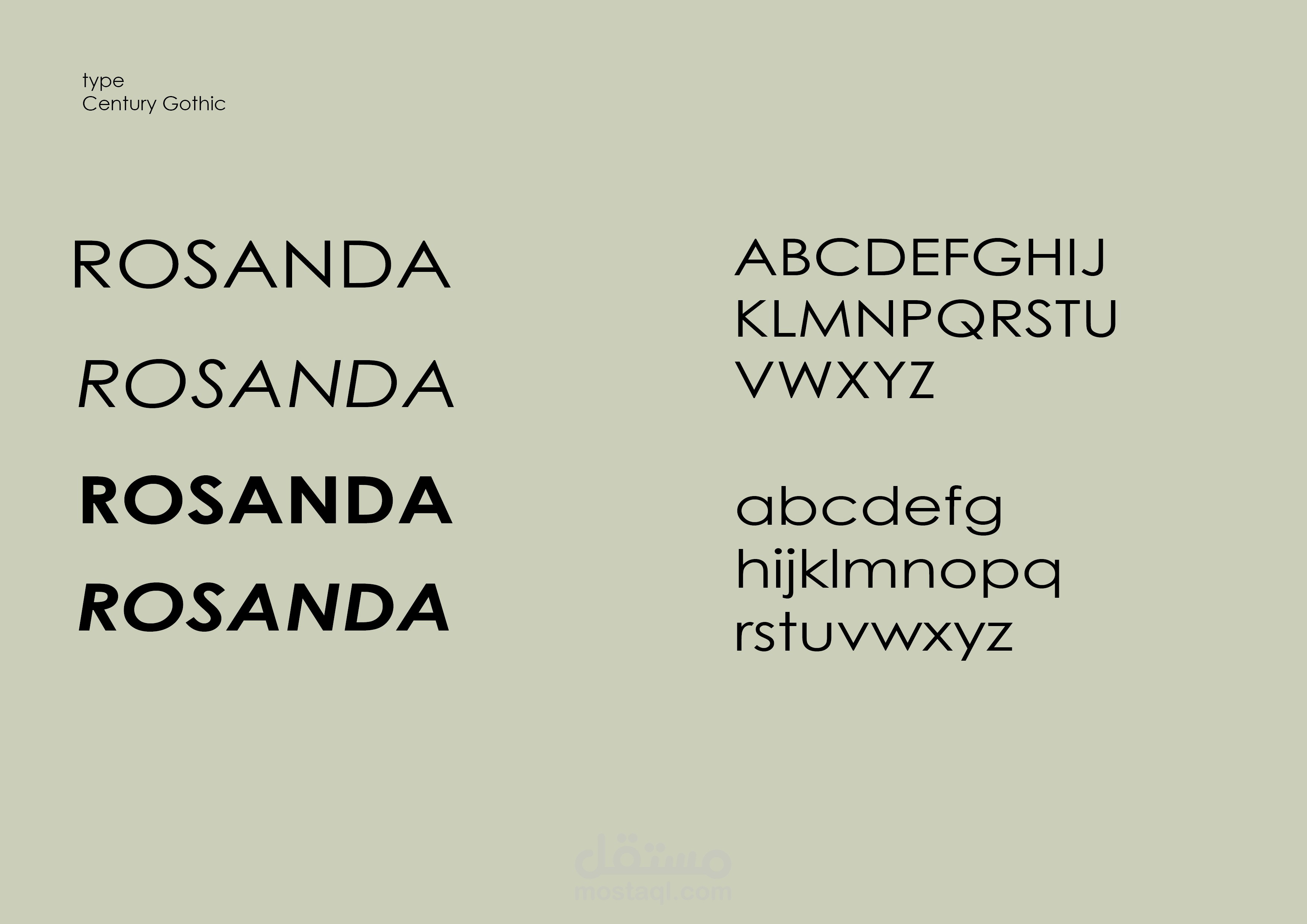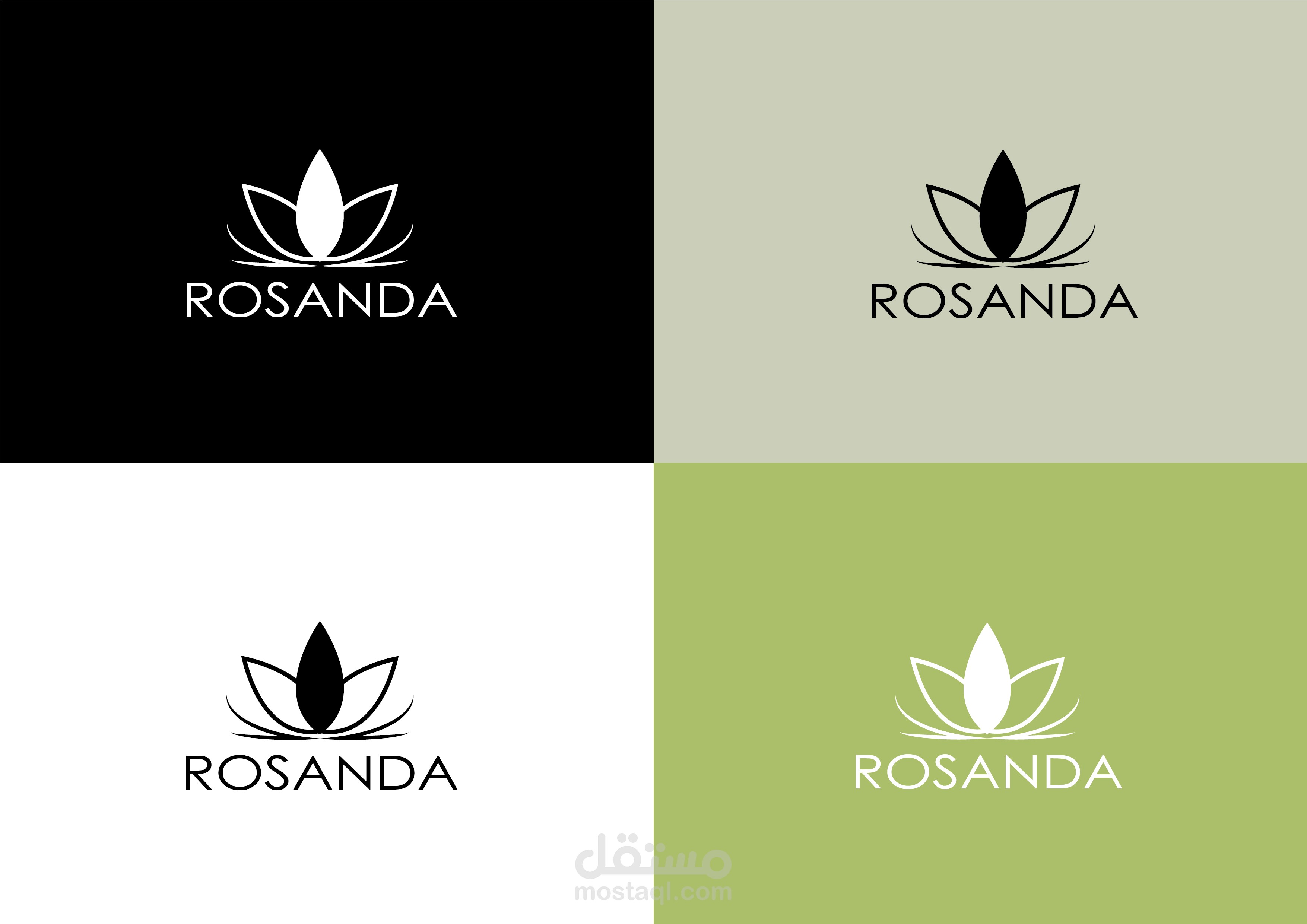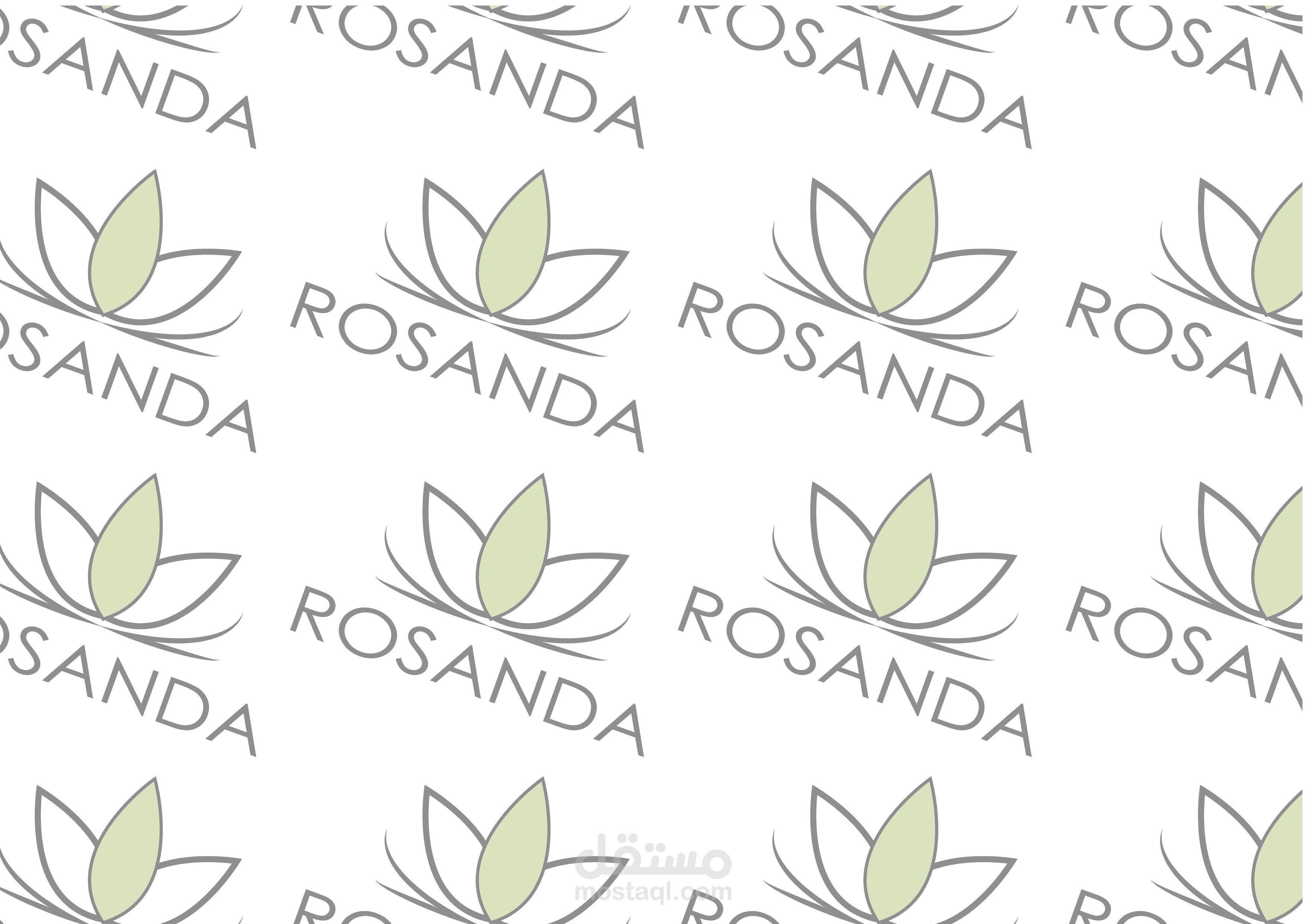 الخط (Wordmark): كلمة ROSANDA مكتوبة بخط أنيق وعصري باللون الأسود، يرمز إلى الفخامة، البساطة، والموثوقية.