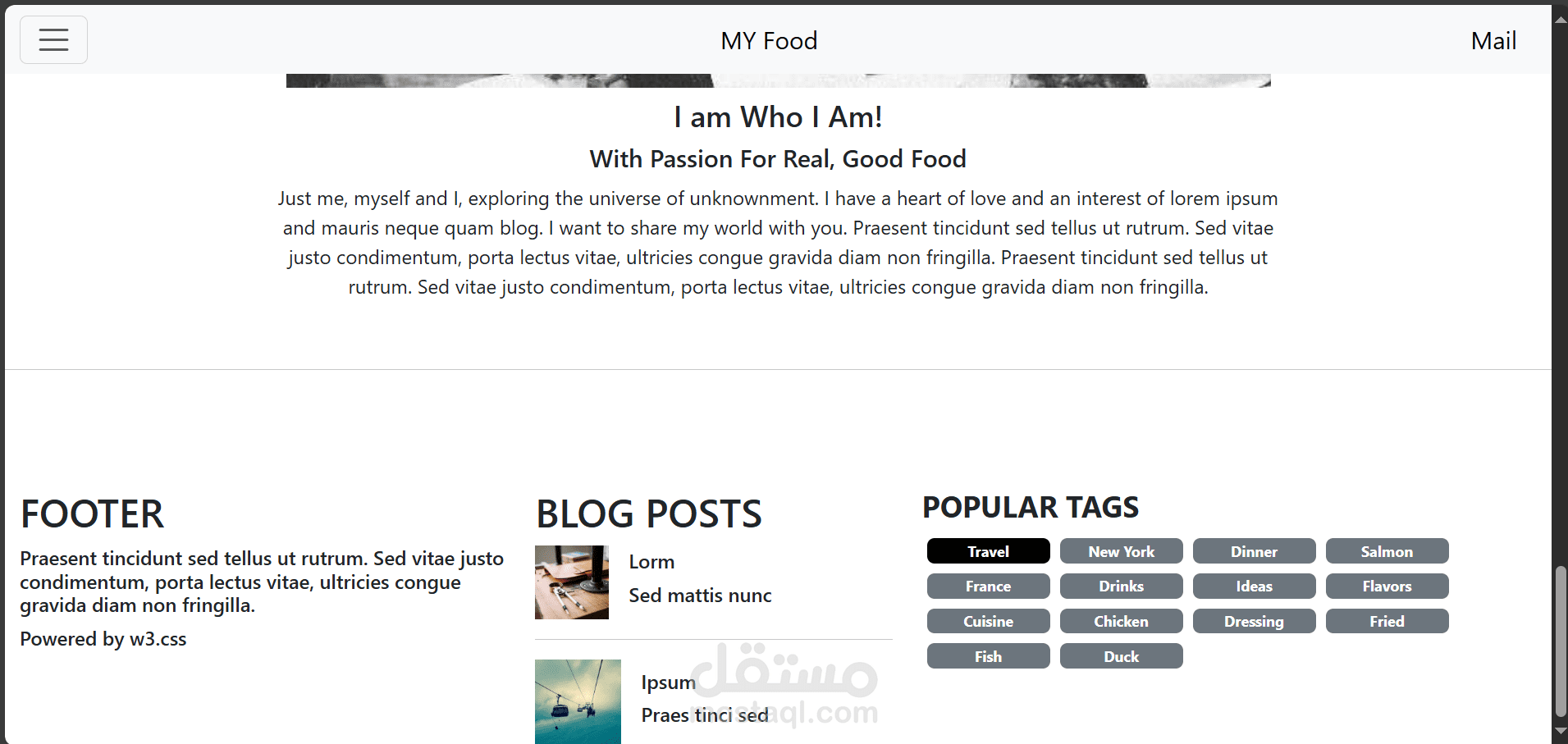 تصميم وتطوير موقع ويب شخصي لمدونة طعام باستخدام HTML و CSS.