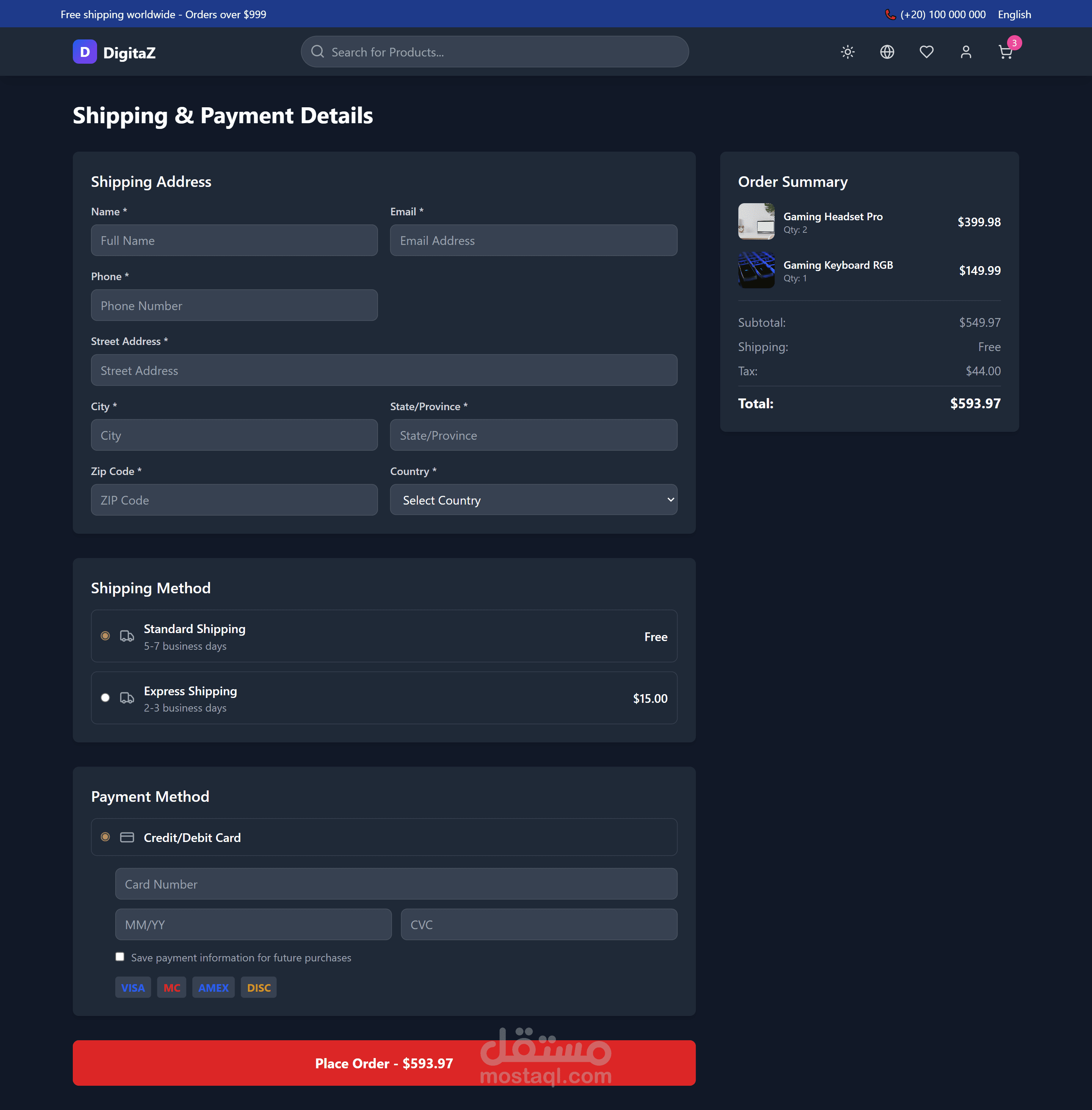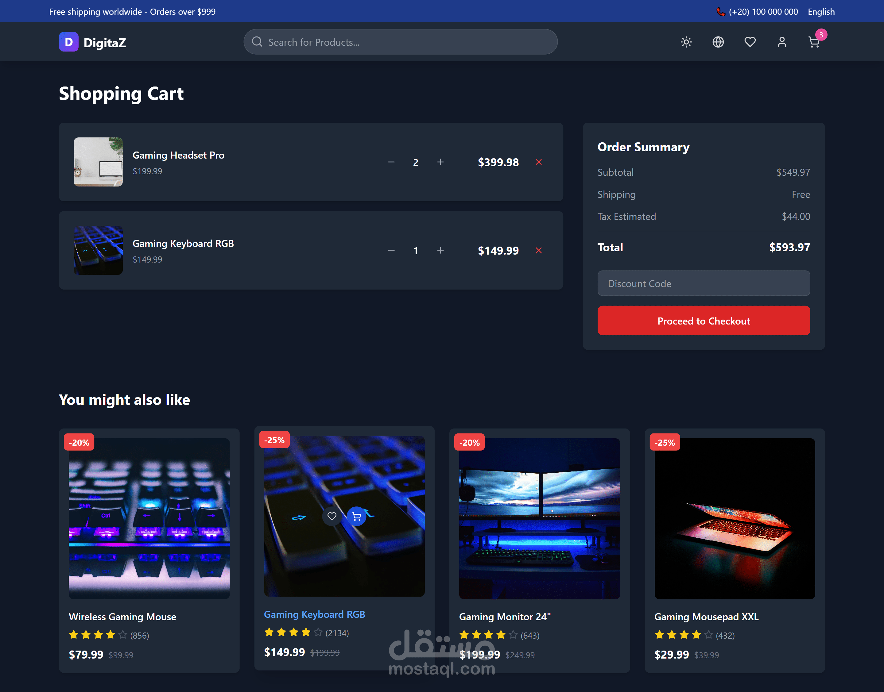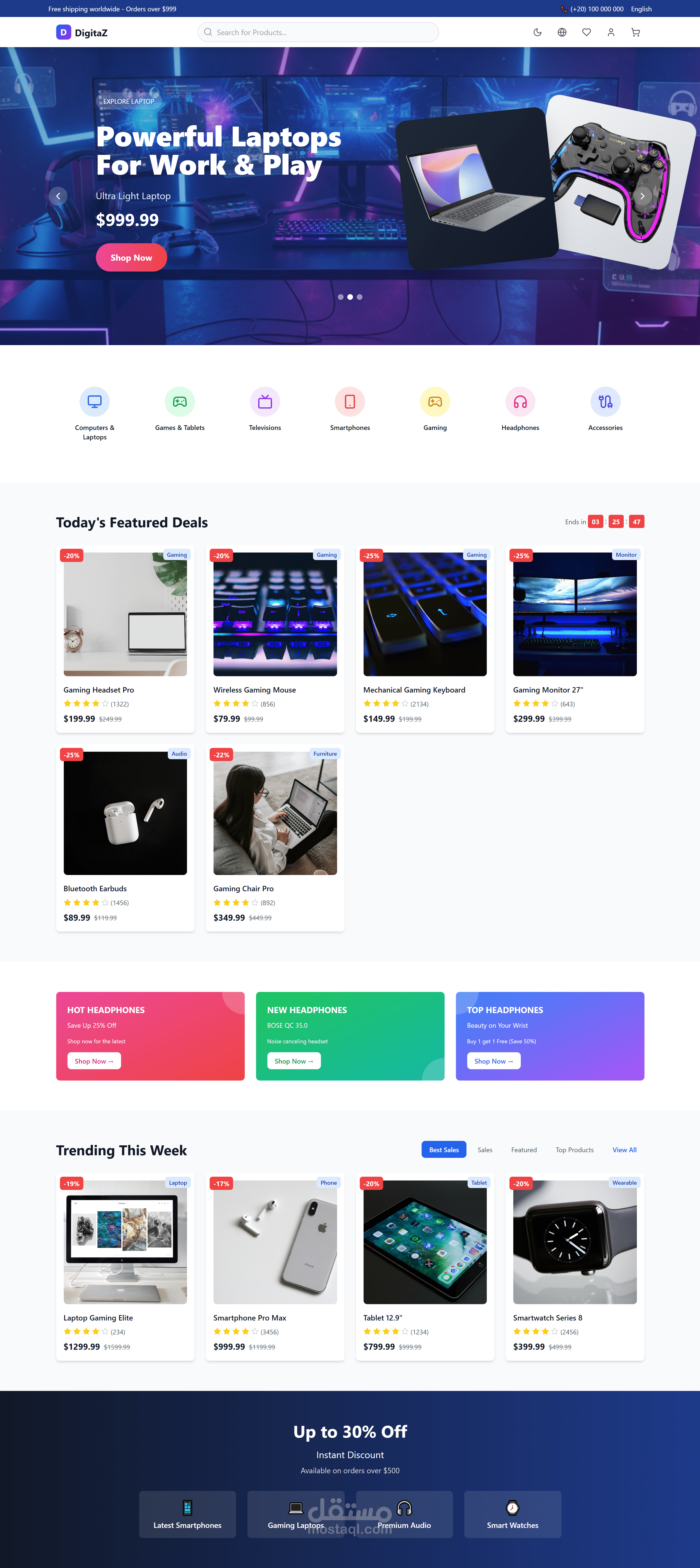 متجر إلكتروني متكامل وعصري مصمم خصيصًا لعشاق التكنولوجيا والألعاب، يقدم تجربة تسوق سلسة وغنية بالميزات. يهدف المشروع إلى توفير منصة سهلة الاستخدام لعرض وبيع مجموعة واسعة من المنتجات الإلكترونية وأدوات الجيمرز، مع التركيز على الأداء العالي والتصميم الجذاب والتجاوب مع مختلف الأجهزة.