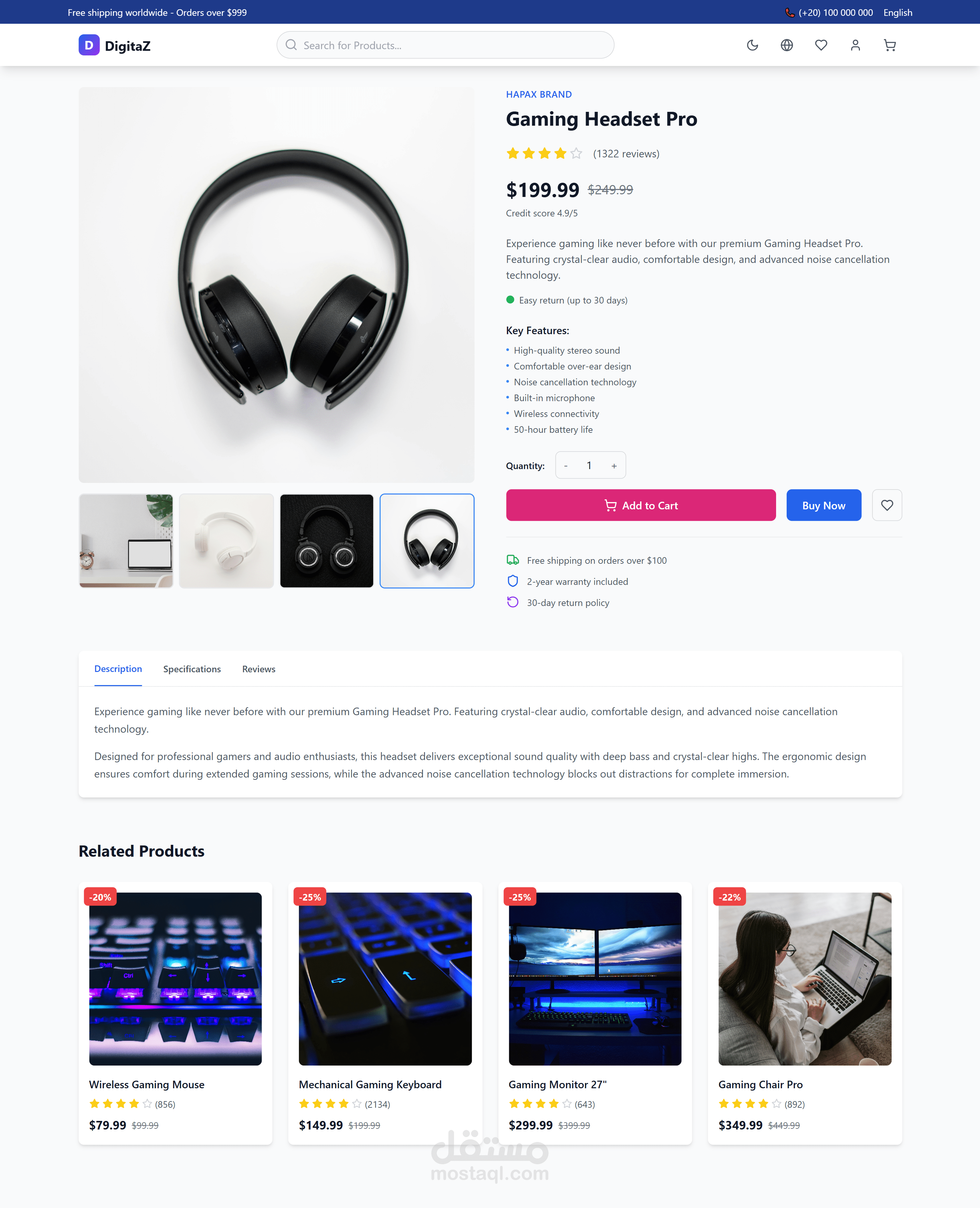دعم متعدد اللغات (Multi-Language Support): يتيح الموقع للمستخدمين التبديل بين لغات مختلفة، مما يوسع قاعدة المستخدمين المحتملين ويجعل تجربة التسوق أكثر سهولة وراحة للمستخدمين.