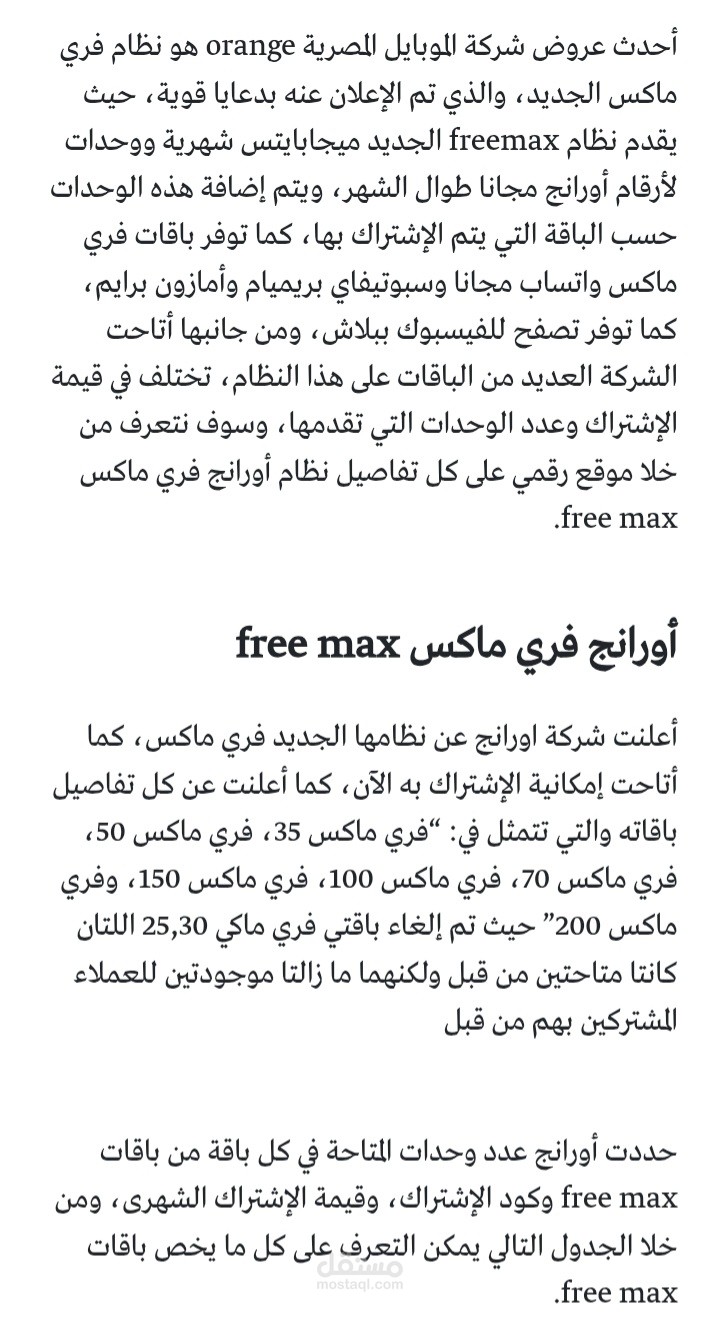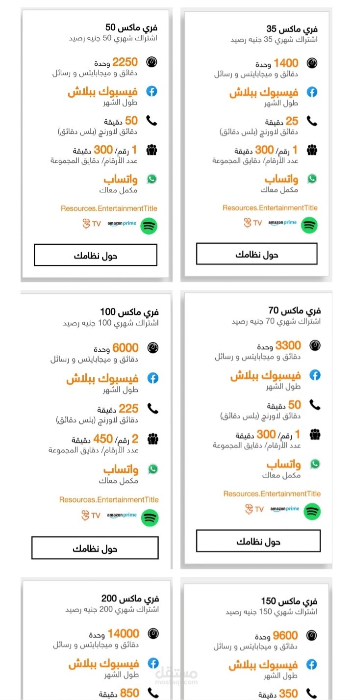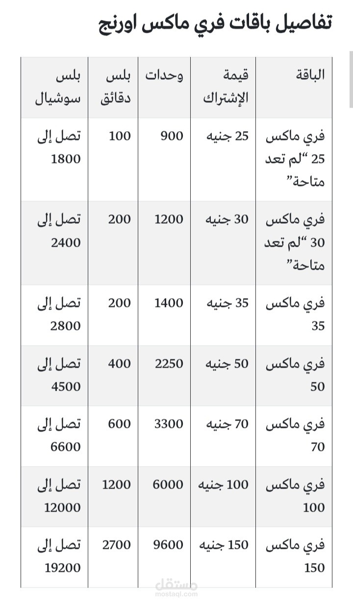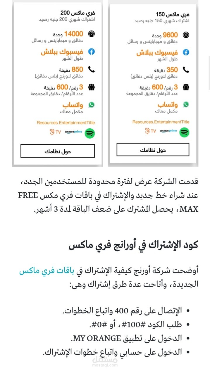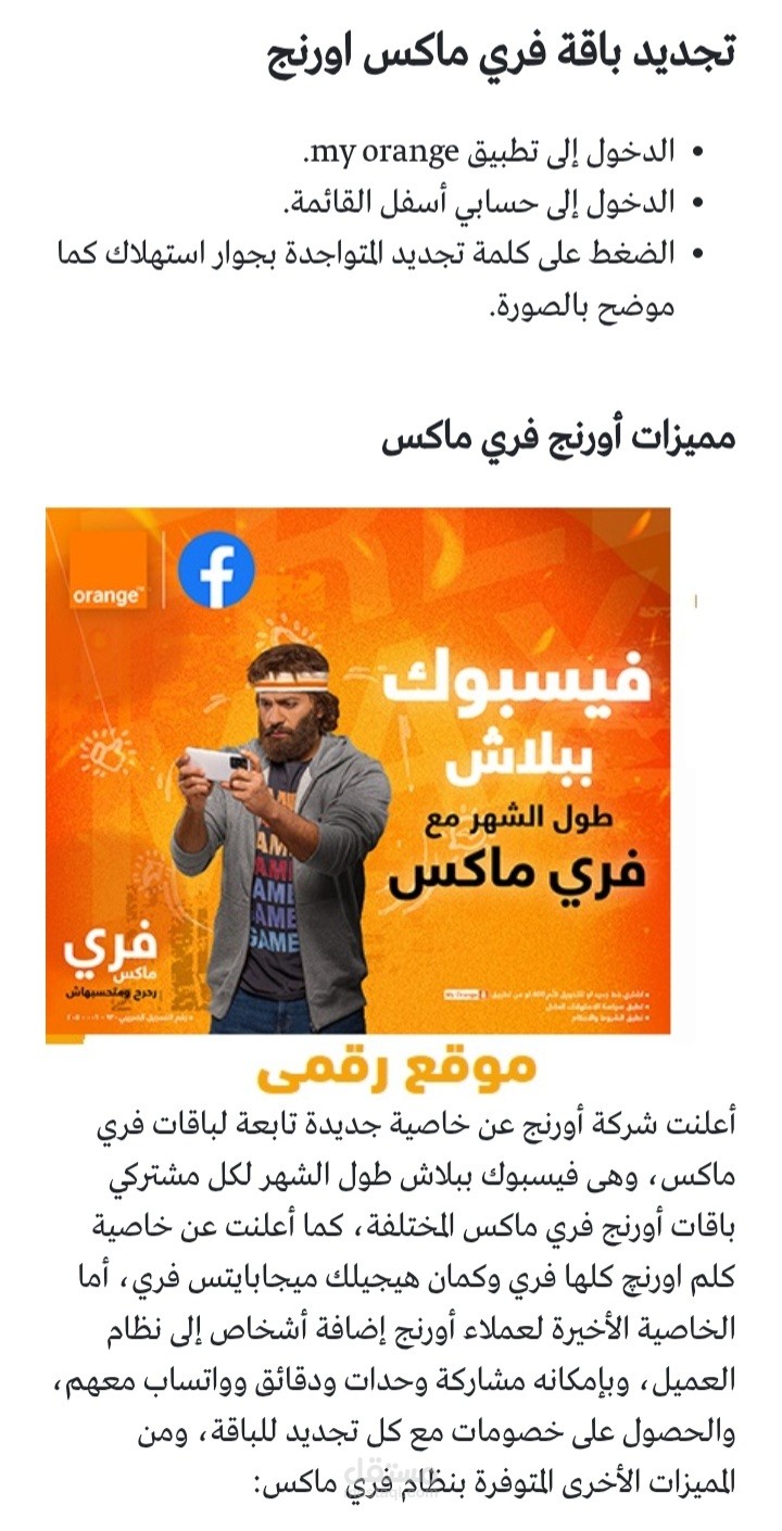 اورنج فري ماكس free max تفاصيل الباقات قيمة وكود الاشتراك