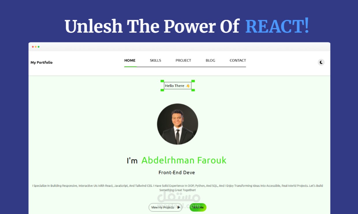 "مشروعي هو بورتفوليو شخصي مصمم ومطور بعناية لعرض أعمالي ومهاراتي في مجال البرمجة وتطوير الويب. يتميز البورتفوليو بتصميم حديث ومتجاوب يعمل بسلاسة على مختلف الأجهزة، مع تجربة مستخدم بسيطة وسريعة.