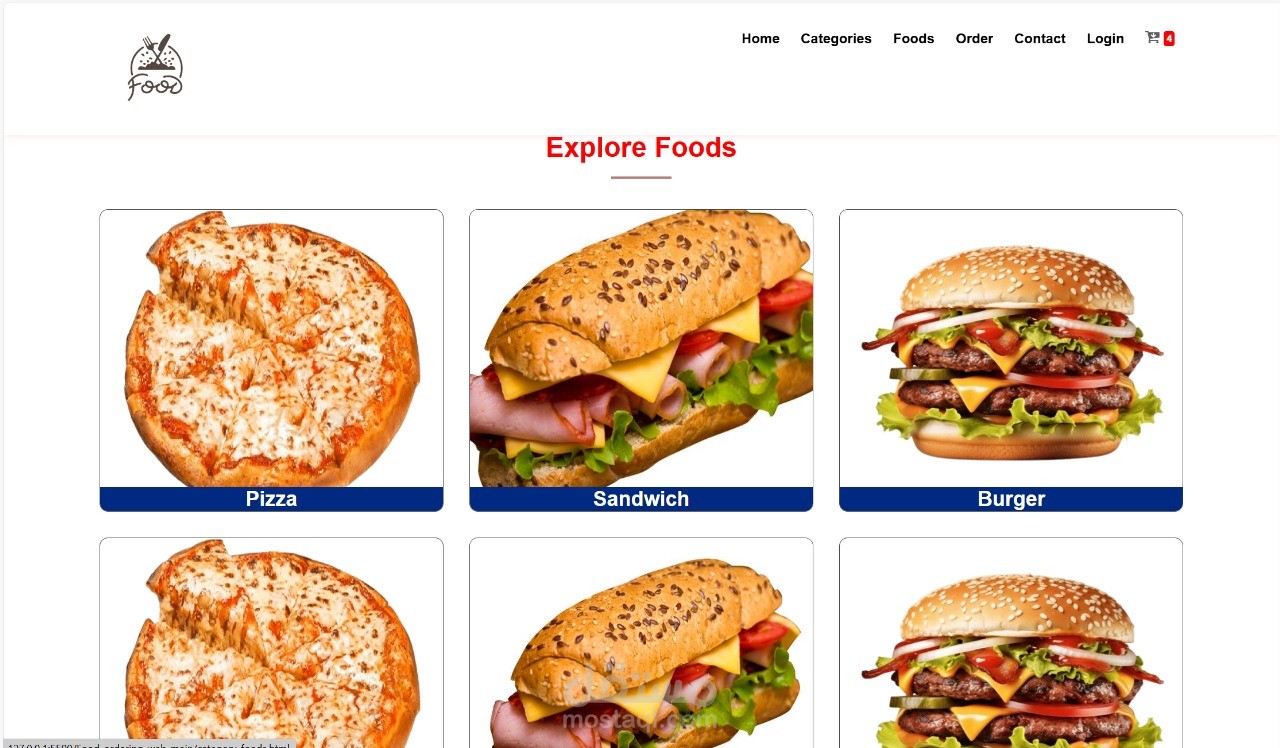 تعرض أنواع الأكلات مثل البيتزا، الساندويتشات، البرجر، وغيرها.