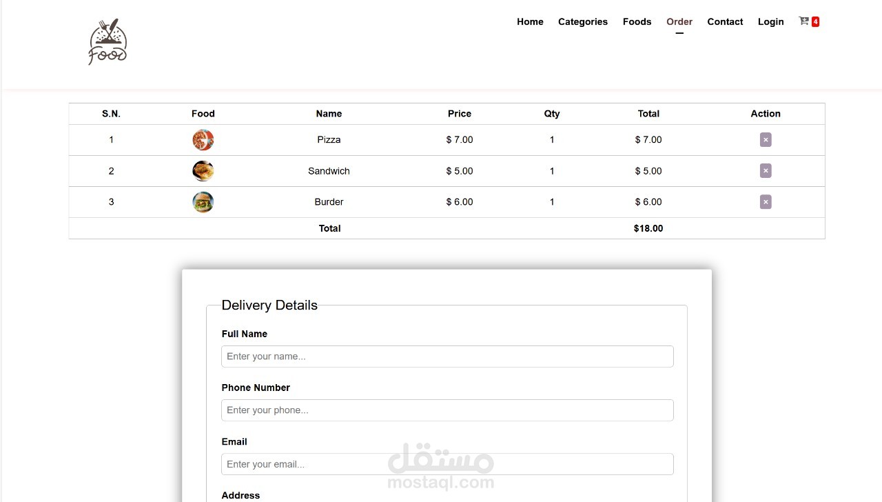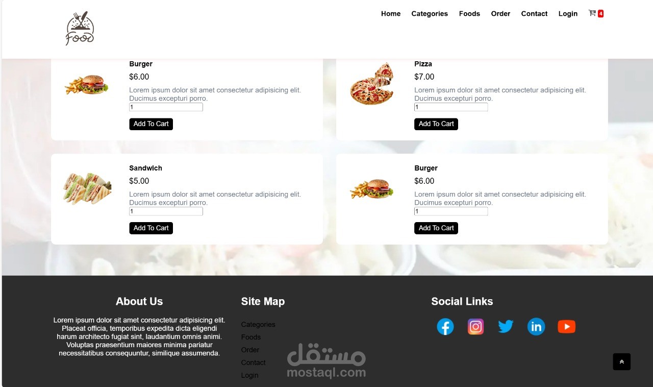 هذا المشروع عبارة عن موقع إلكتروني لتوصيل الطعام عبر الإنترنت يهدف إلى توفير واجهة سهلة الاستخدام للعملاء لعرض قائمة الأطعمة وطلبها مباشرة.