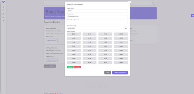 نظام حضور ومتابعة للمرضى والمواعيد.
