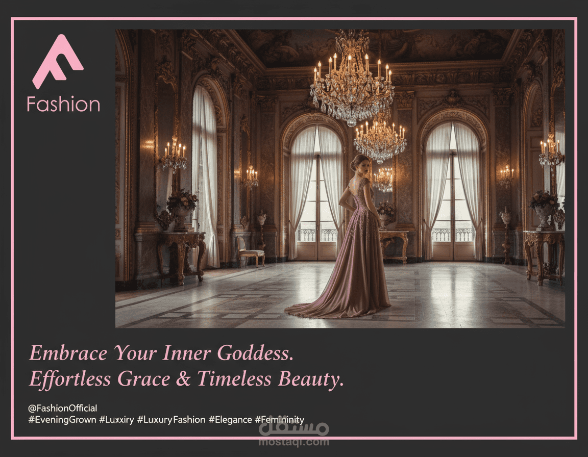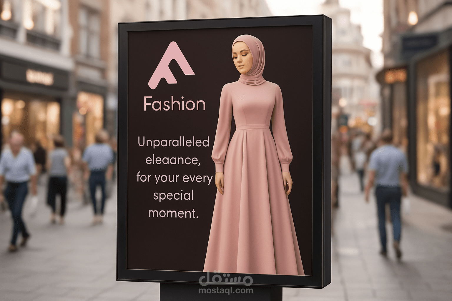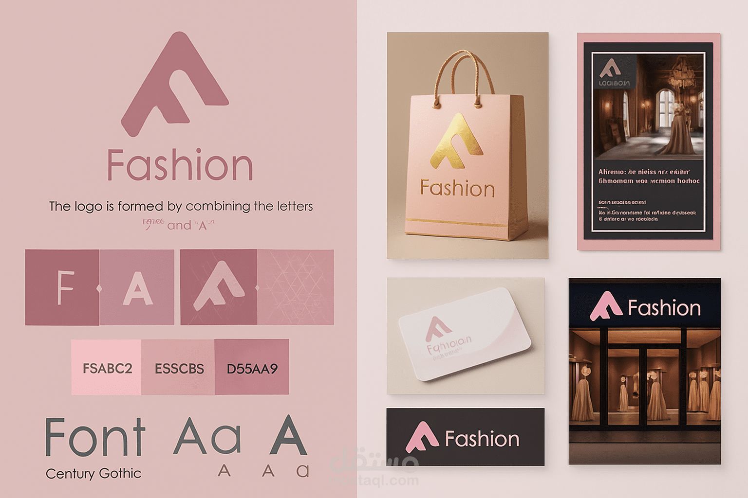 تم تصميم شعار Fashion بطريقة مبتكرة تجمع بين حرفي الـ F والـ A في تكوين هندسي أنيق يعكس روح العلامة التجارية.