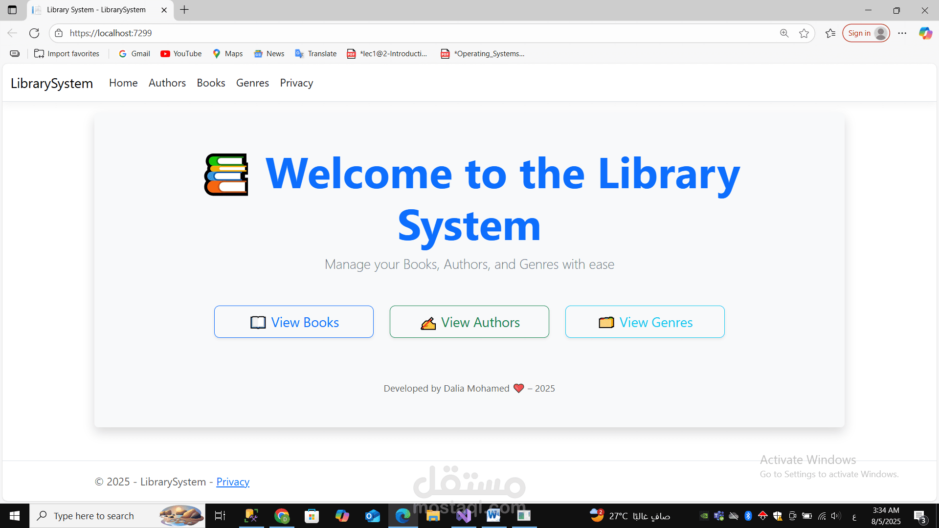 النتيجة: واجهة منظمة ولوحة تحكم لإدارة المكتبة بكفاءة.