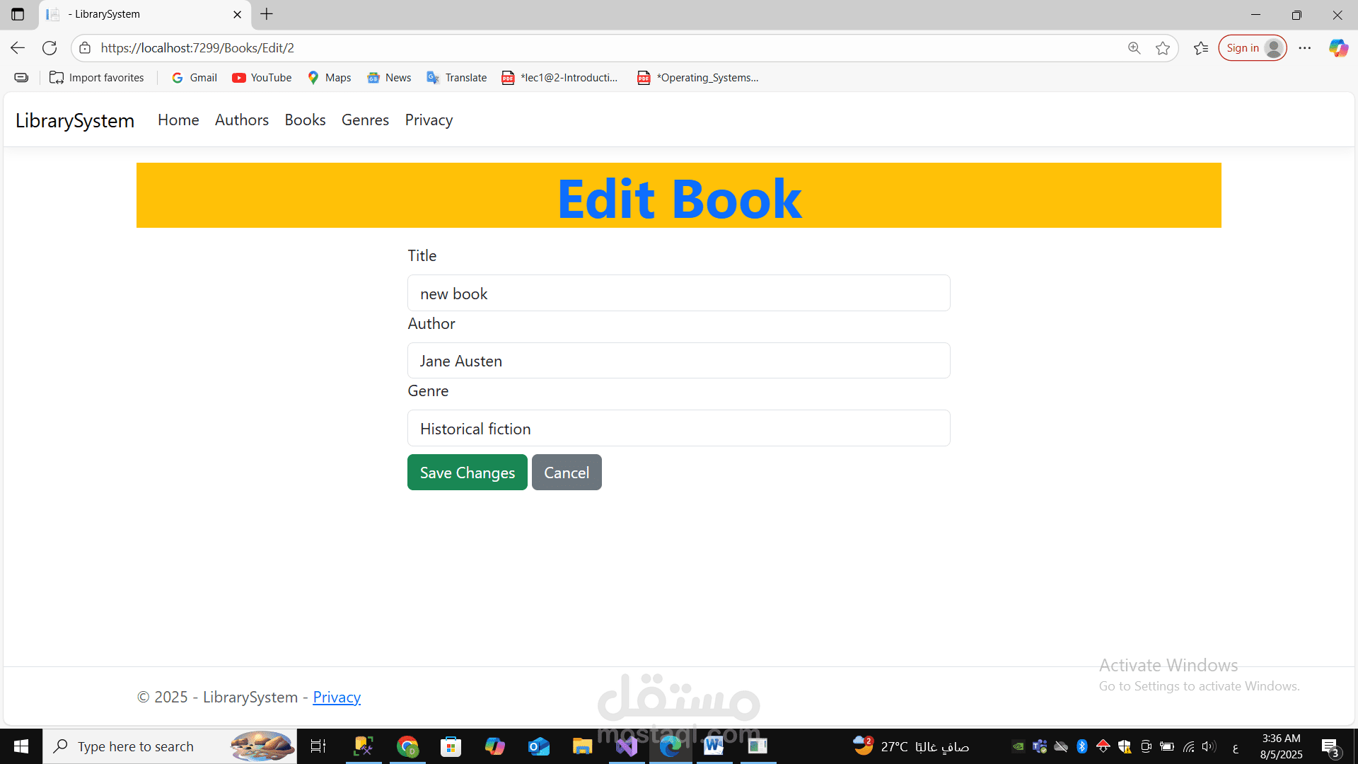 تطبيق ويب لإدارة الكتب، المؤلفين، والأصناف مع عمليات CRUD كاملة.