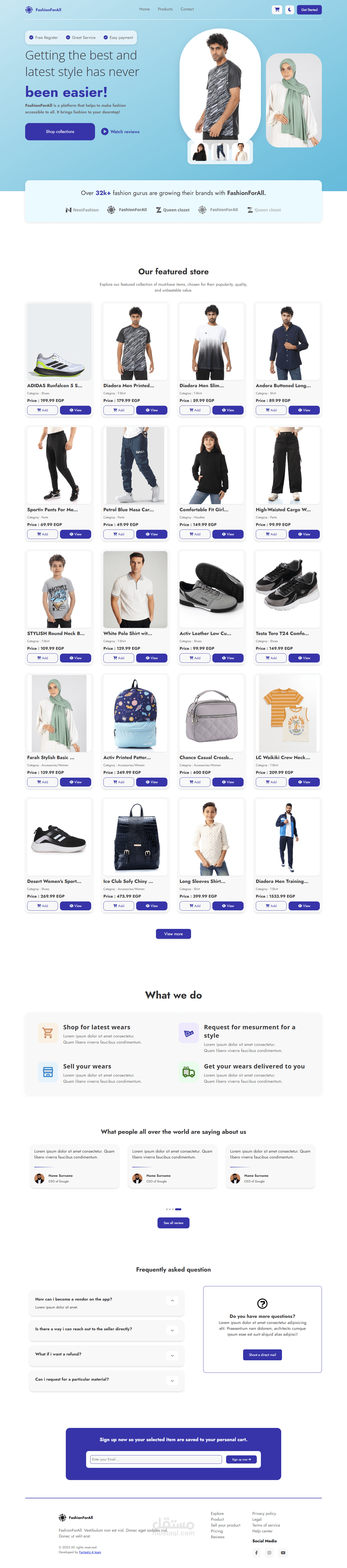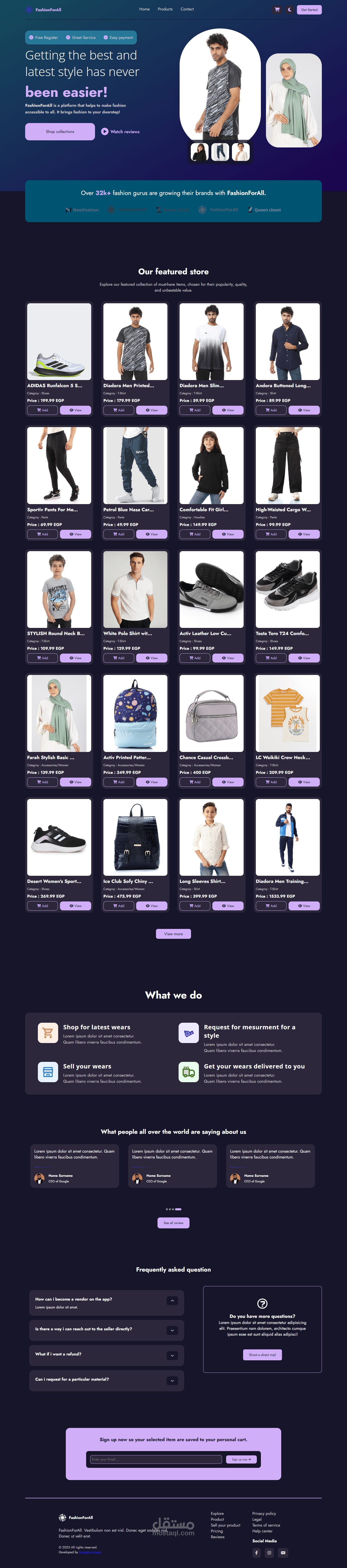 قمت بتحويل تصميم متجر إلكتروني باسم FashionForAll من Figma إلى كود حقيقي باستخدام Vanilla JavaScript مع تصميم عصري وتجربة مستخدم احترافية. الموقع يضم الخصائص الأساسية لأي متجر حديث: