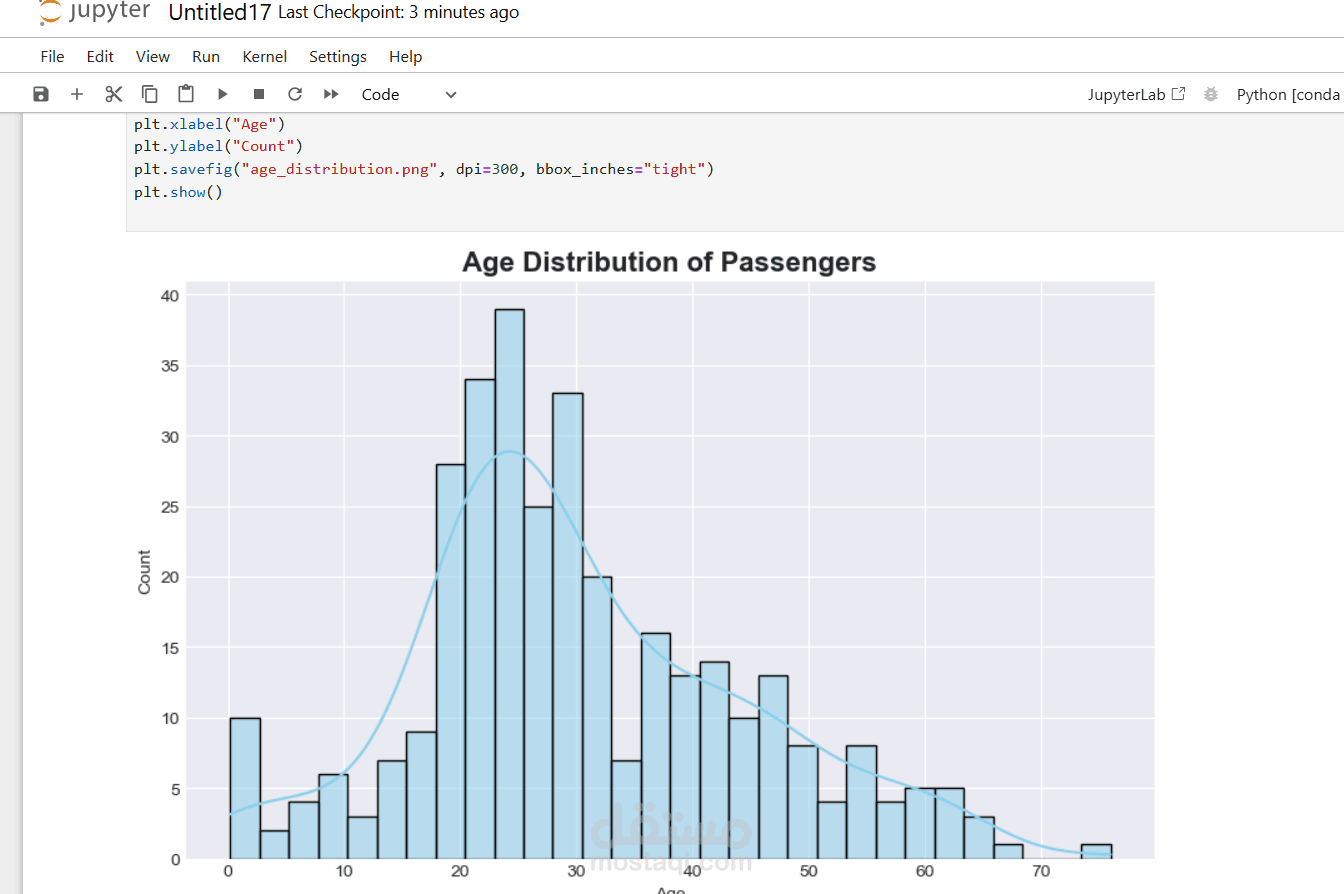- تحليل توزيع الأعمار وأسعار التذاكر باستخدام المخططات الإحصائية.