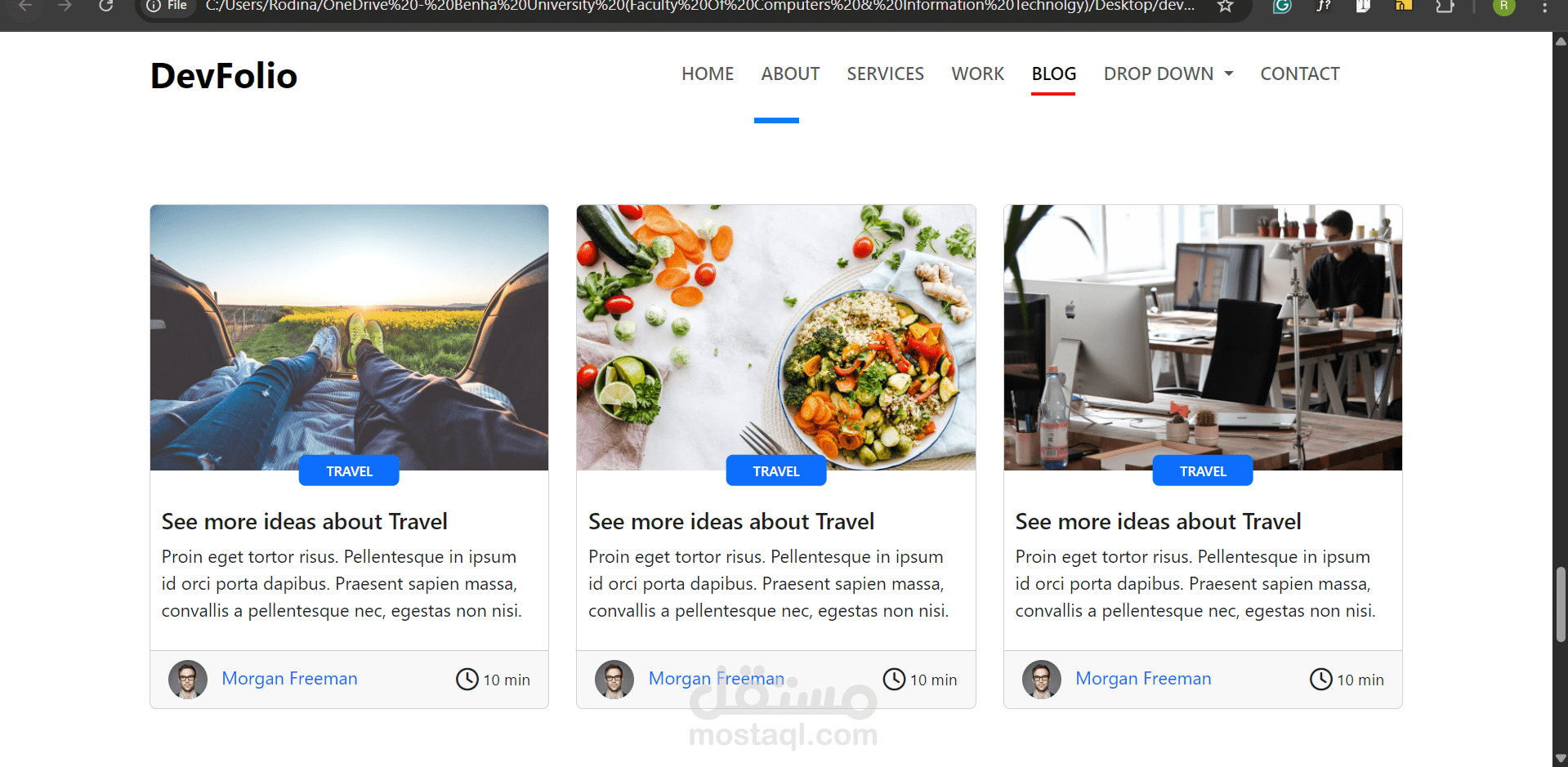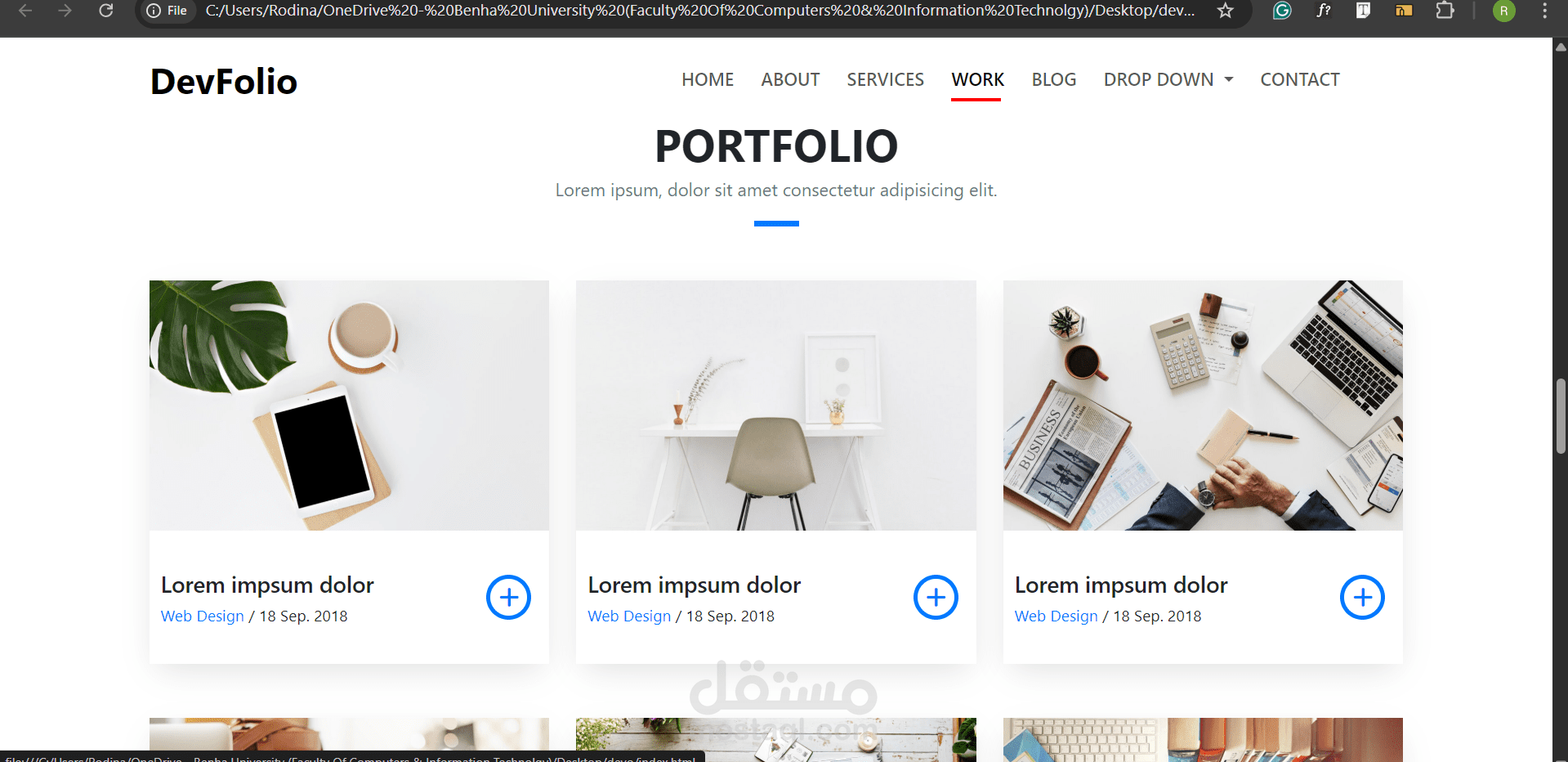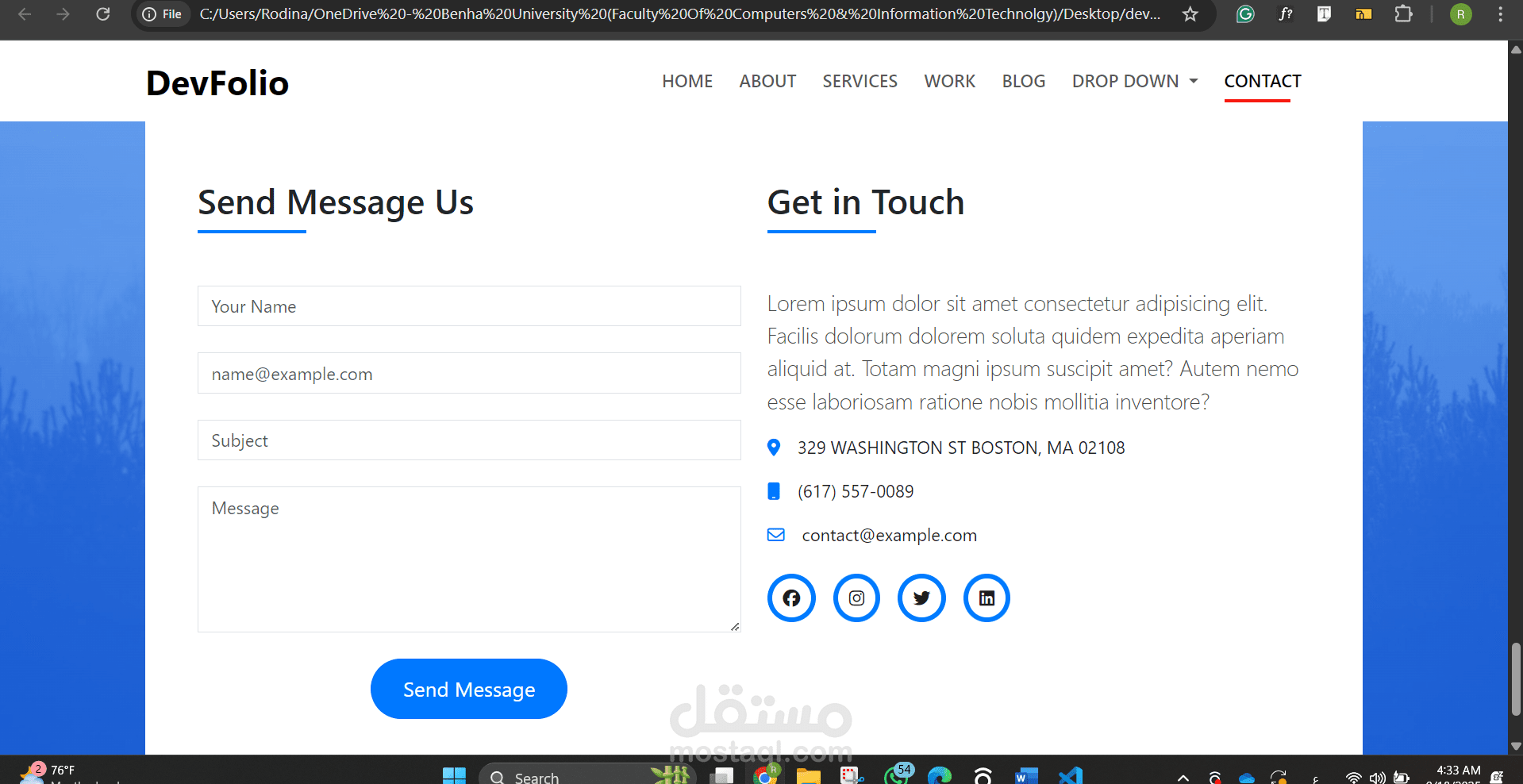 مشروع Portfolio (محفظة أعمال)، صممته وعملته عشان أعرّف بنفسي وأعرض مهاراتي وخبراتي كمطور واجهات أمامية (Front-End Developer).هدفه عرض المشاريع بيقدم كل المشاريع اللي اشتغلت عليها بشكل منظم، مع إعطاء نبذة عن كل مشروع والتقنيات اللي استخدمتها فيه. ده بيساعد أي مدير توظيف أو عميل محتمل إنه يشوف جودة شغلي ويقيّمها.إبراز المهارات بيوضح التقنيات واللغات اللي أنا متخصص فيها، زي React.js أو غيرها، وده بيخليني مرشح أقوى للوظائف اللي بتتطلب المهارات دي.طريقة تواصل بيحتوي على طريقة سهلة للتواصل معايا، سواء من خلال فورم (form) أو لينكات السوشيال ميديا الخاصة بي زي LinkedIn أو GitHub.