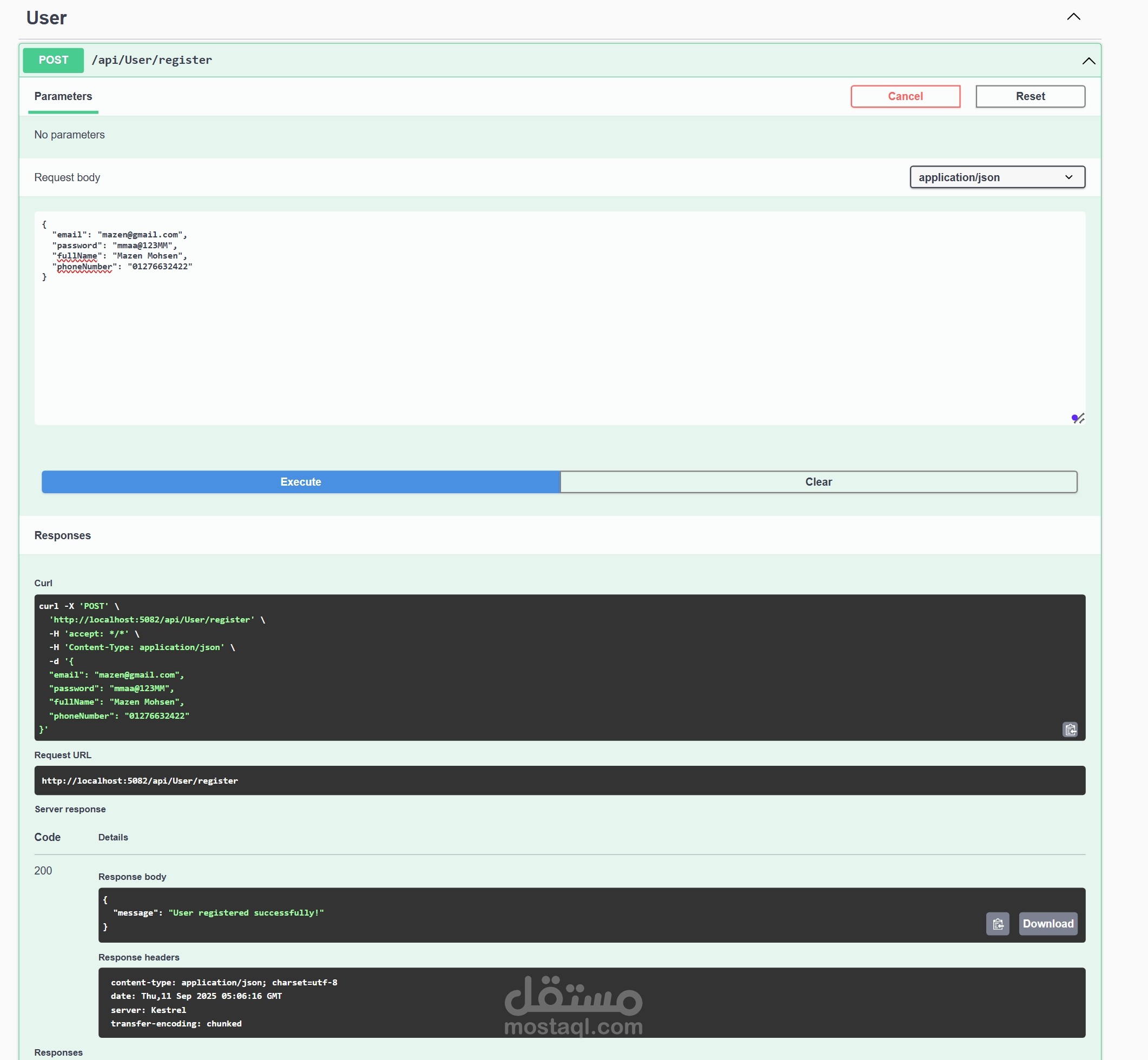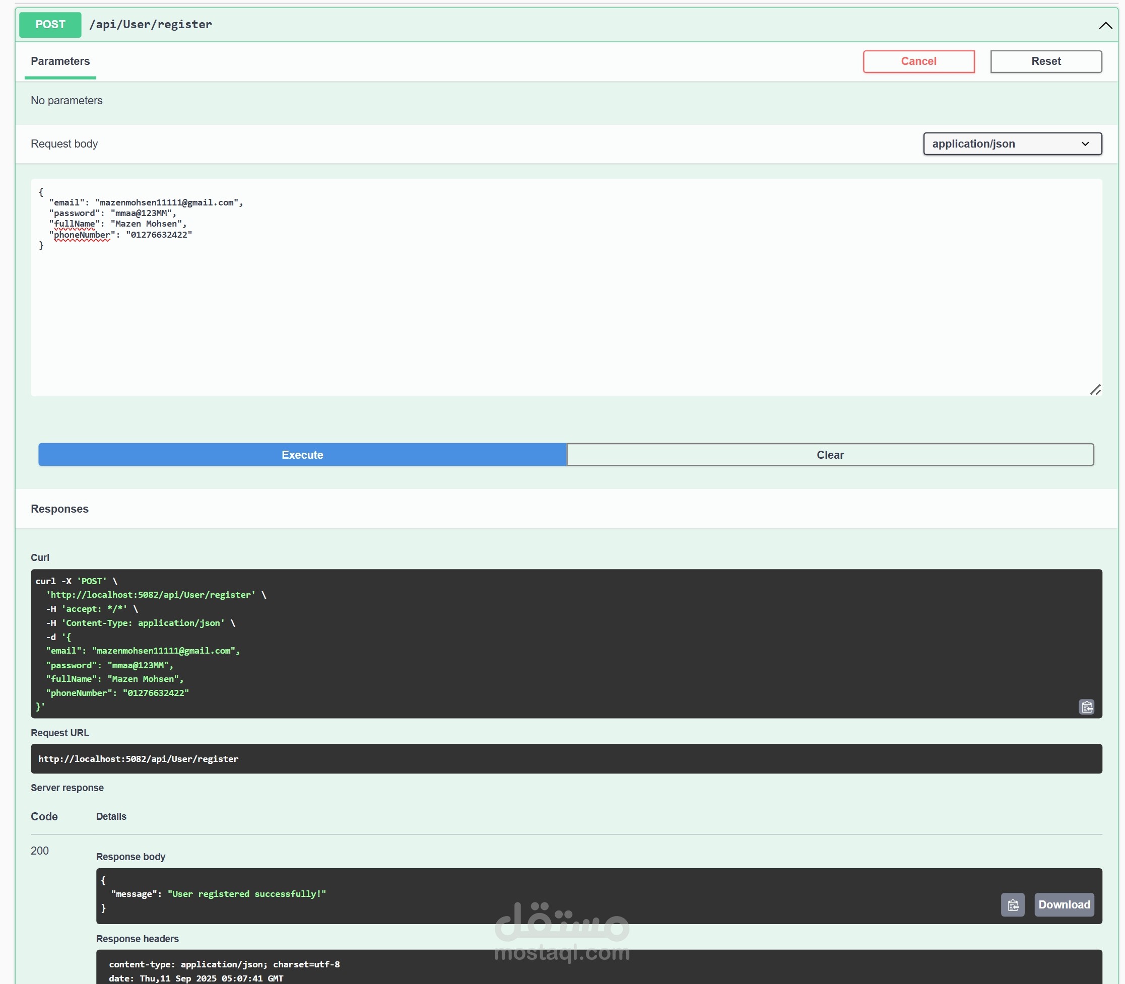 نظام مصادقة حديث: تم تنفيذ نظام مصادقة آمن باستخدام JWT (JSON Web Tokens) لحماية الـ Endpoints وتأمين وصول المستخدمين.