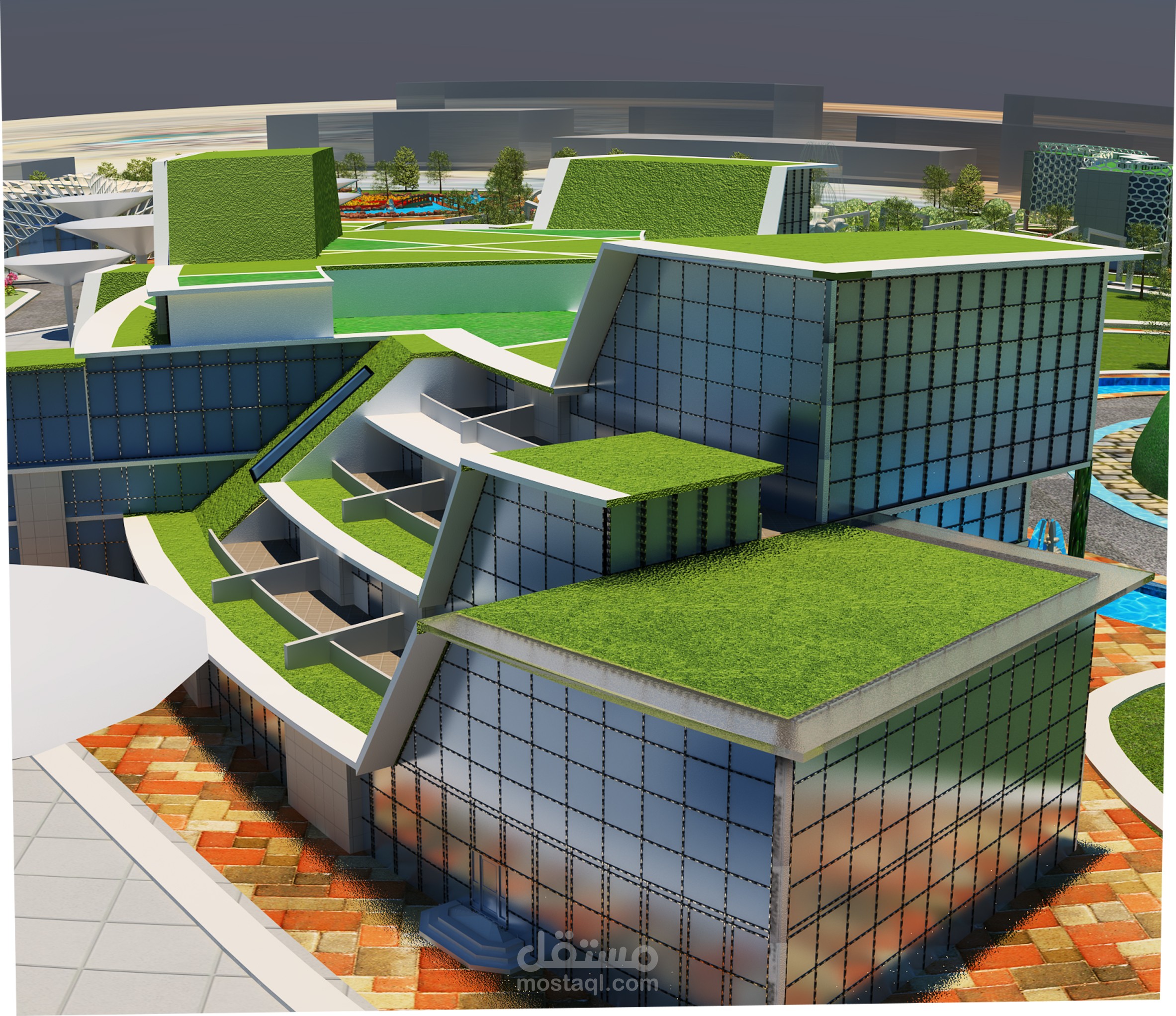 مشروع تخرجى استخدمت برنامج الريفيت المعمارى والثرى دى ماكس والفوتوشوب والاوتوكاد