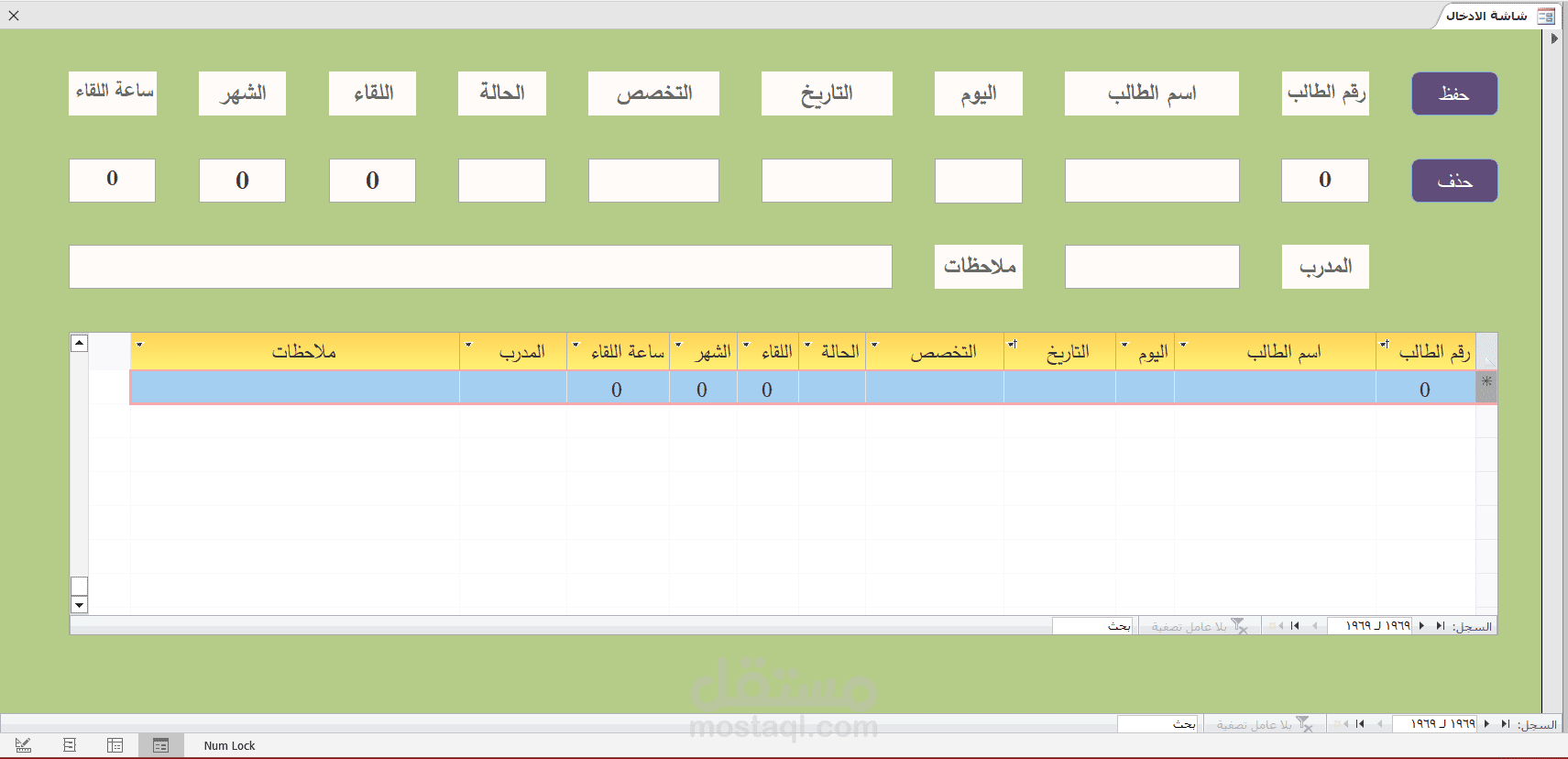 نظام حضور وغياب متكامل يربط بين Excel و Access حيث يتم إدخال بيانات الطلاب والموظفين على قاعدة بيانات Access وتظهر بشكل منسق على Excel