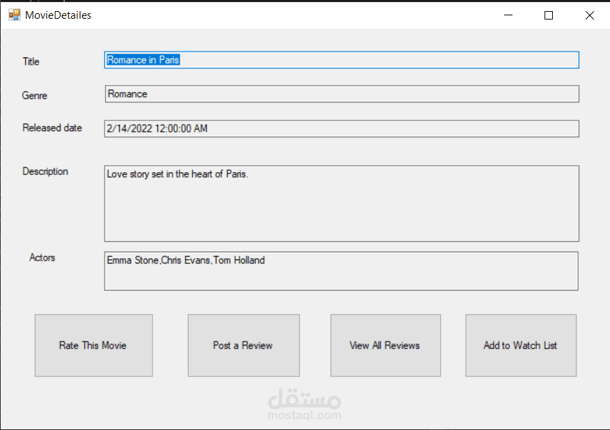 طورت تطبيق سطح مكتب باستخدام C# وWindows Forms يحاكي منصة IMDb الشهيرة.