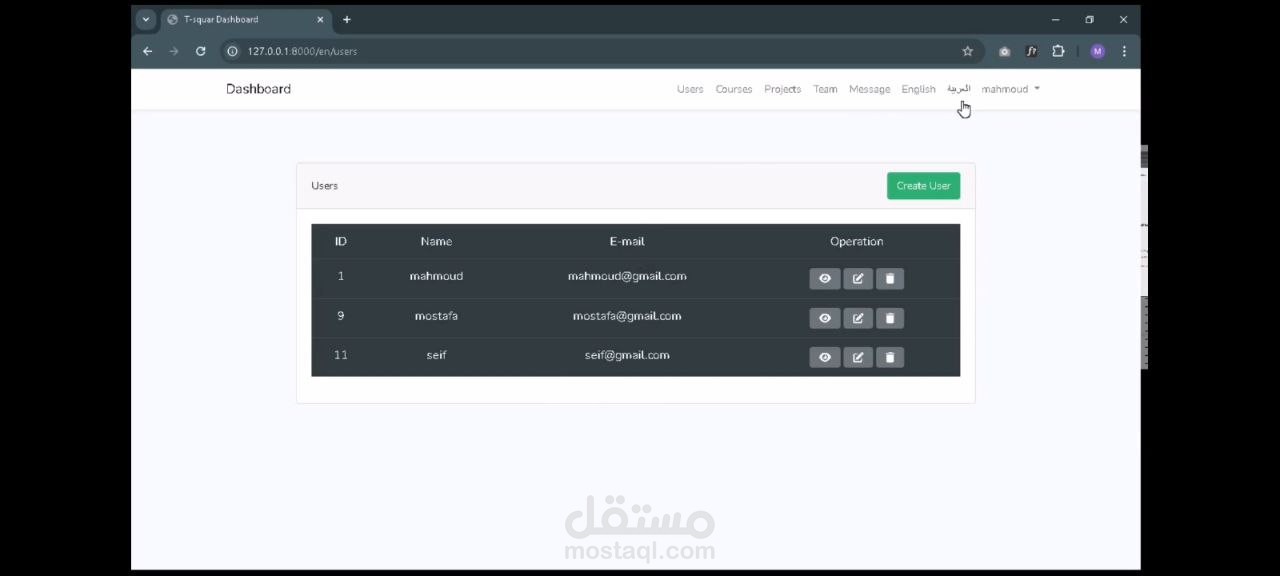 تم تنفيذ جميع عمليات CRUD بشكل شامل لإدارة الدورات، بيانات المتعلمين، والمدربين وجهات الاتصال، مع بناء RESTful API متكامل يسمح بربط المنصة مع تطبيقات الهاتف المحمول أو أنظمة أخرى خارجية.