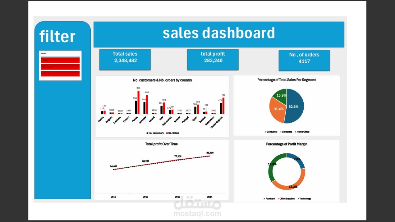 The project involves developing a sales and profit dashboard that visualizes key business metrics such as:
