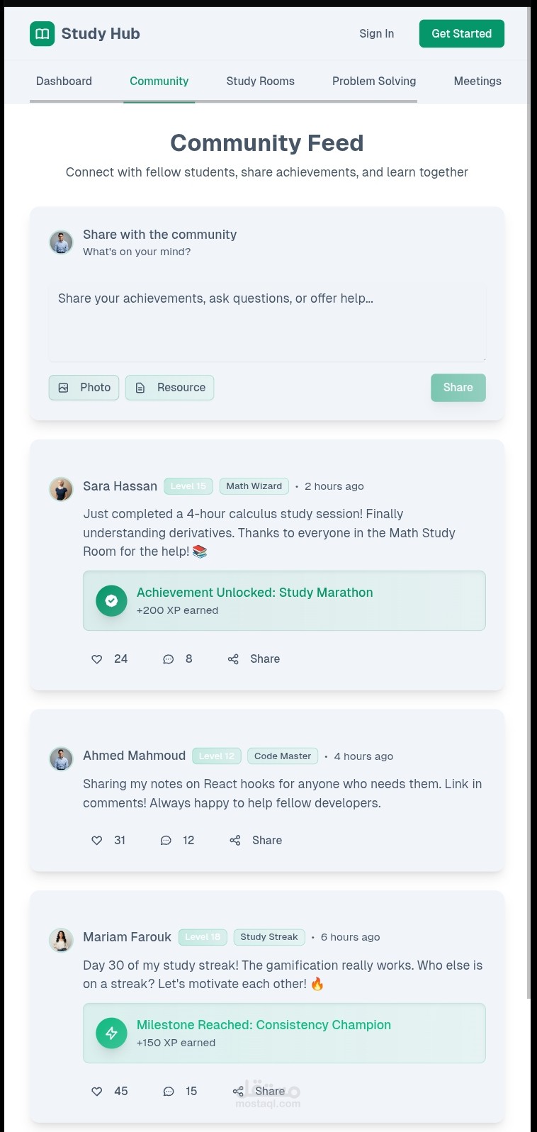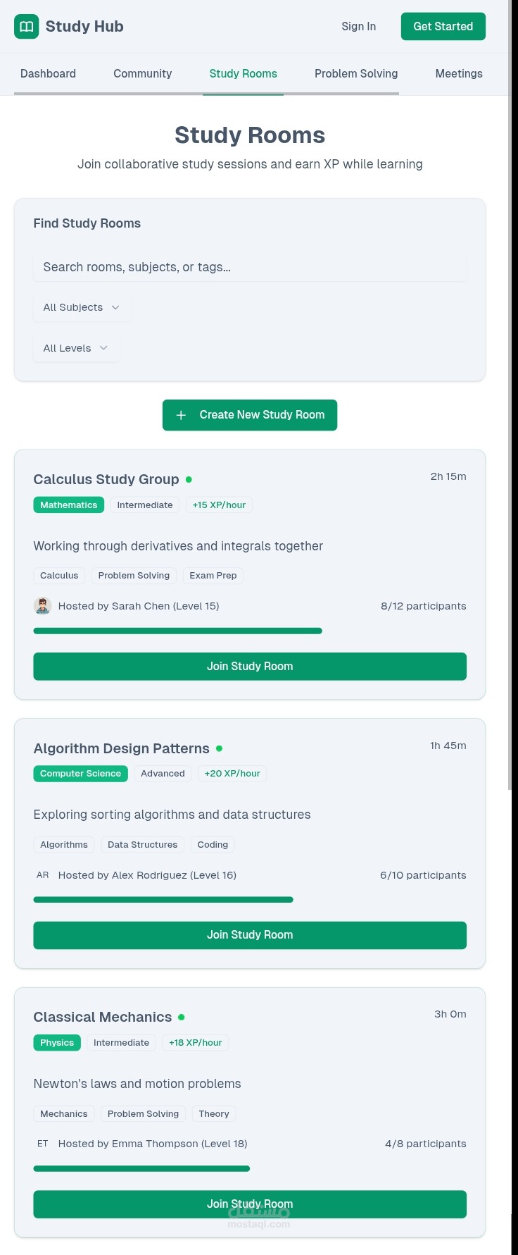 منصة ويب مجتمعية باسم Study Hub بتساعد الطلاب يذاكروا مع بعض أونلاين بشكل تفاعلي ومسلي.