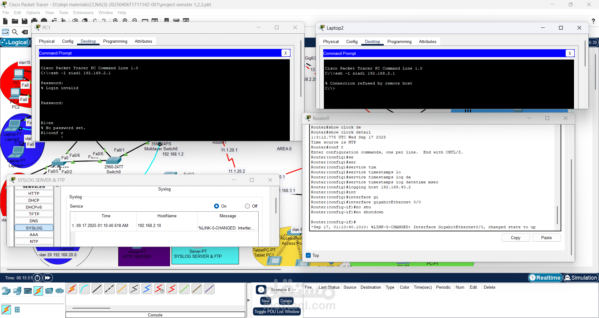 IP Addressing & DHCP: Subnetted the network and implemented DHCP with relay for automated IP allocation.