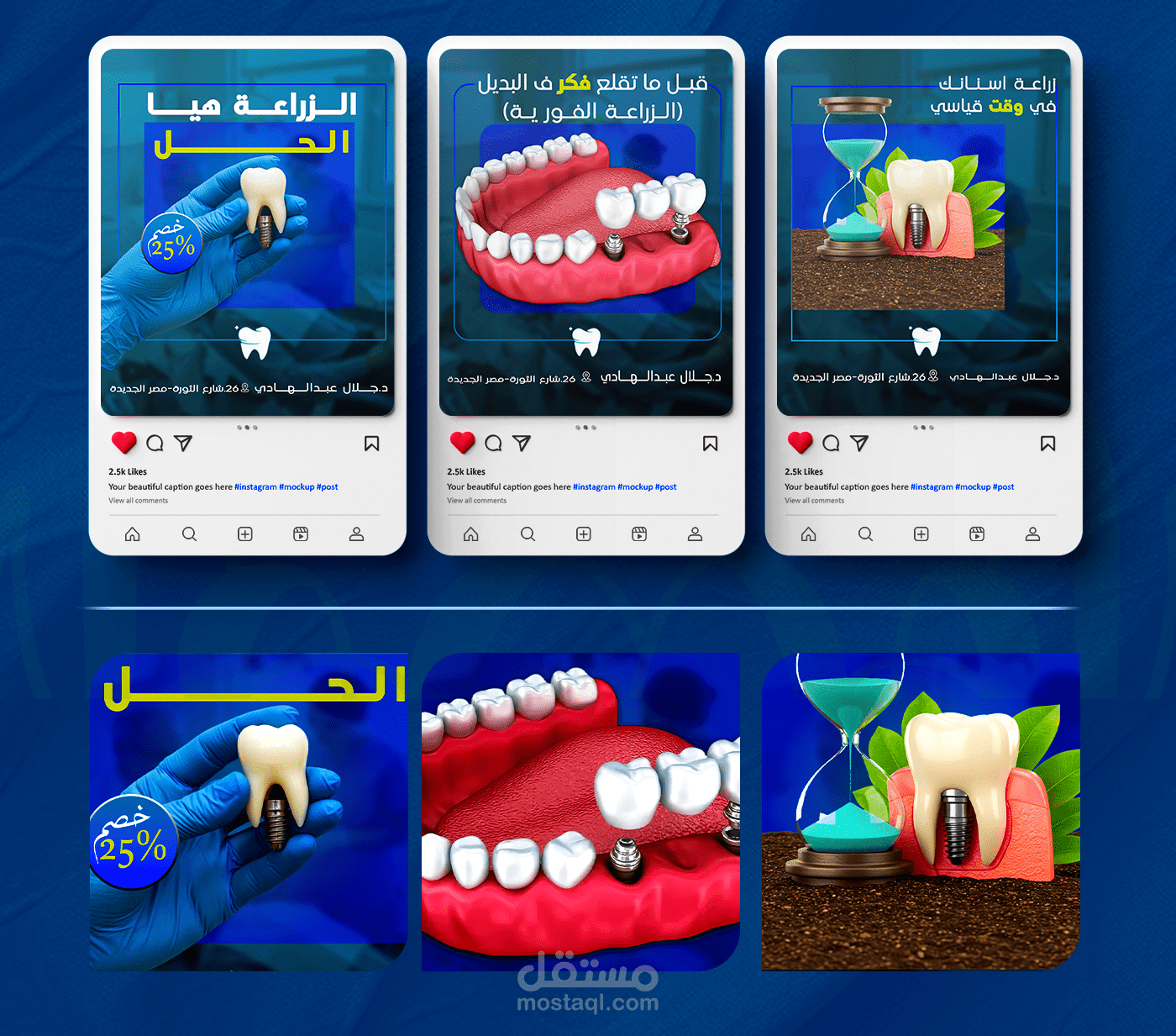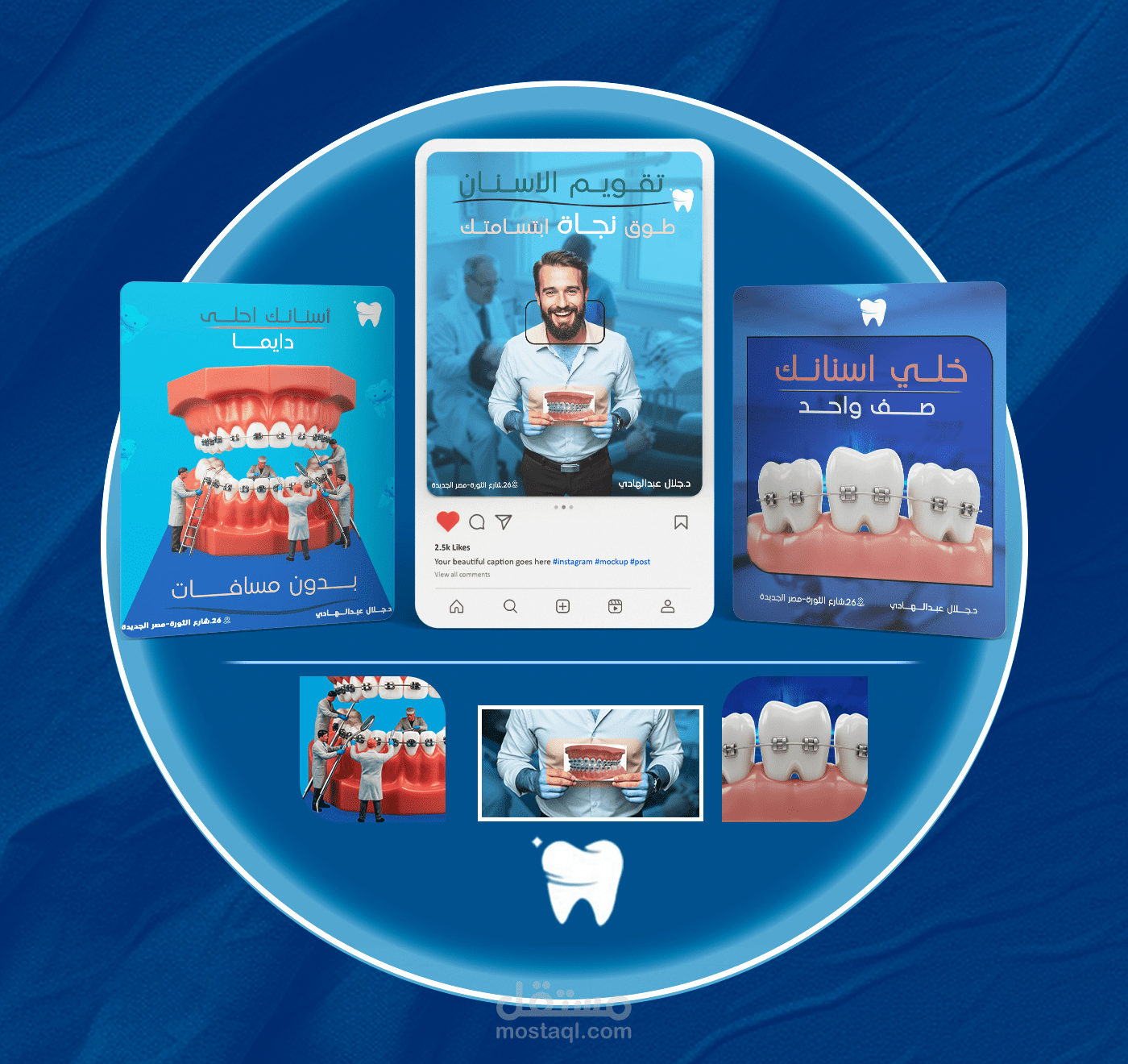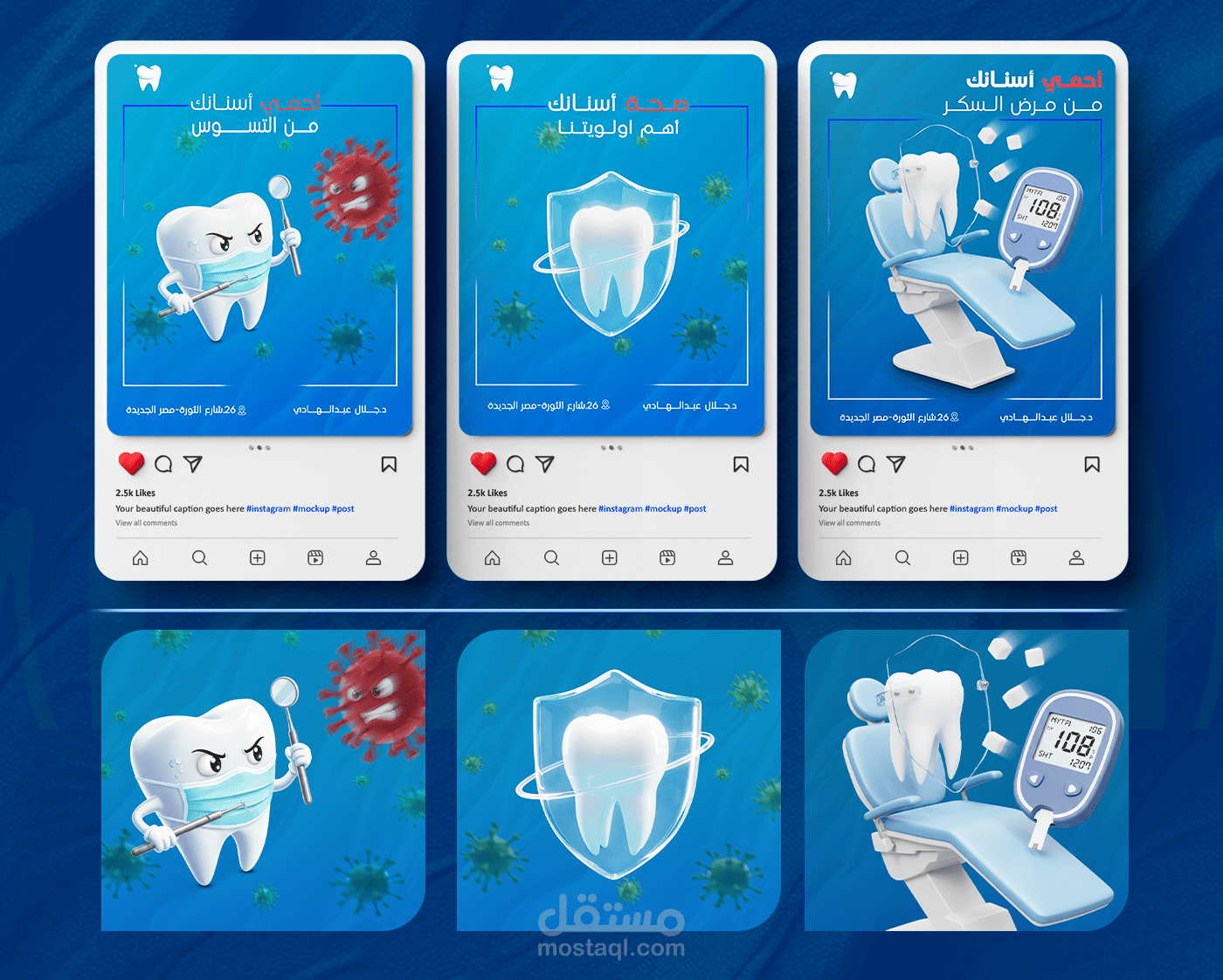 عملت على تصميم كامبين للاعلان عن تقديم خدمات عيادة الاسنان مع الحفاظ على الهوية وابراز الخدمات بشكل بسيط ومنسق.