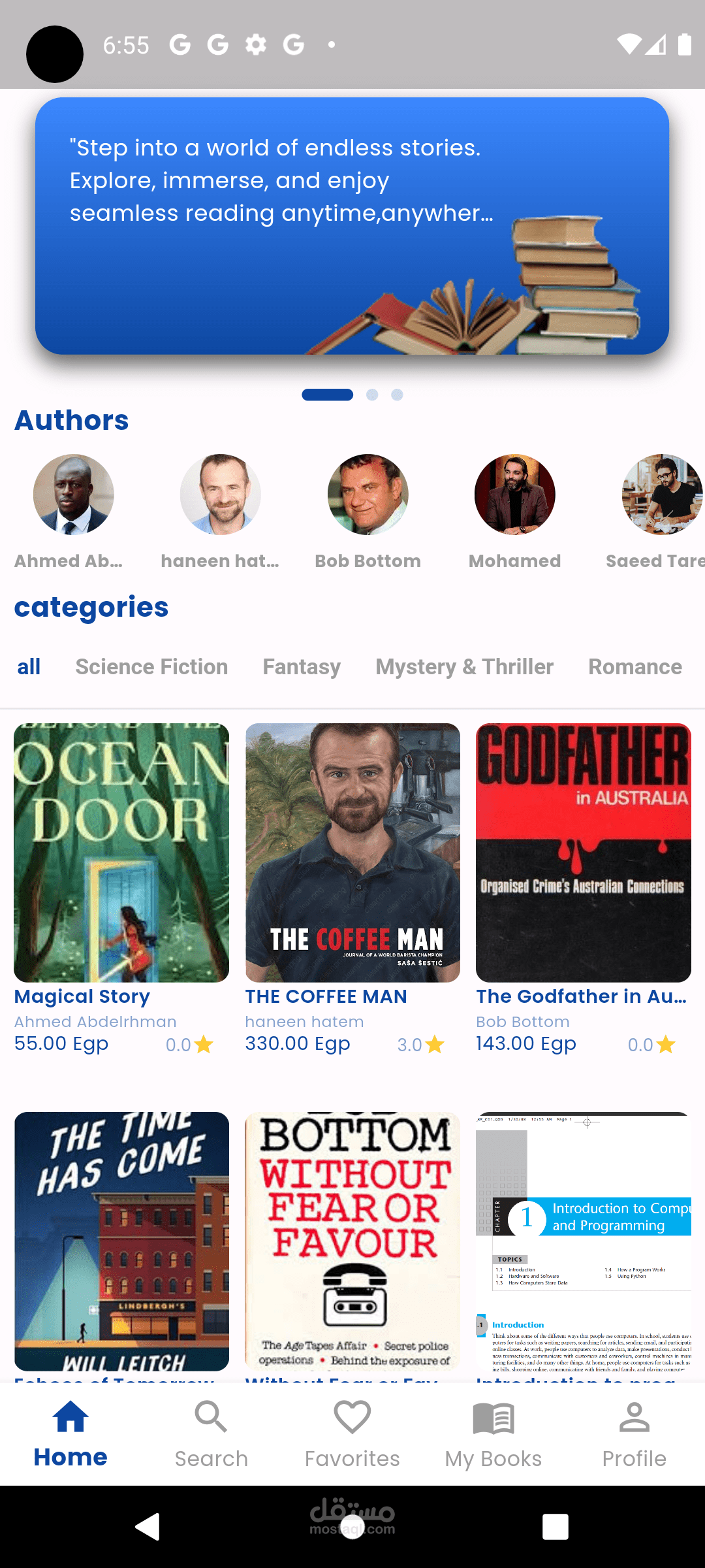 Booky هو تطبيق مخصص لعشّاق القراءة، يتيح للمستخدمين استكشاف مجموعة واسعة من الكتب الإلكترونية مع واجهة سهلة الاستخدام وتجربة سلسة.