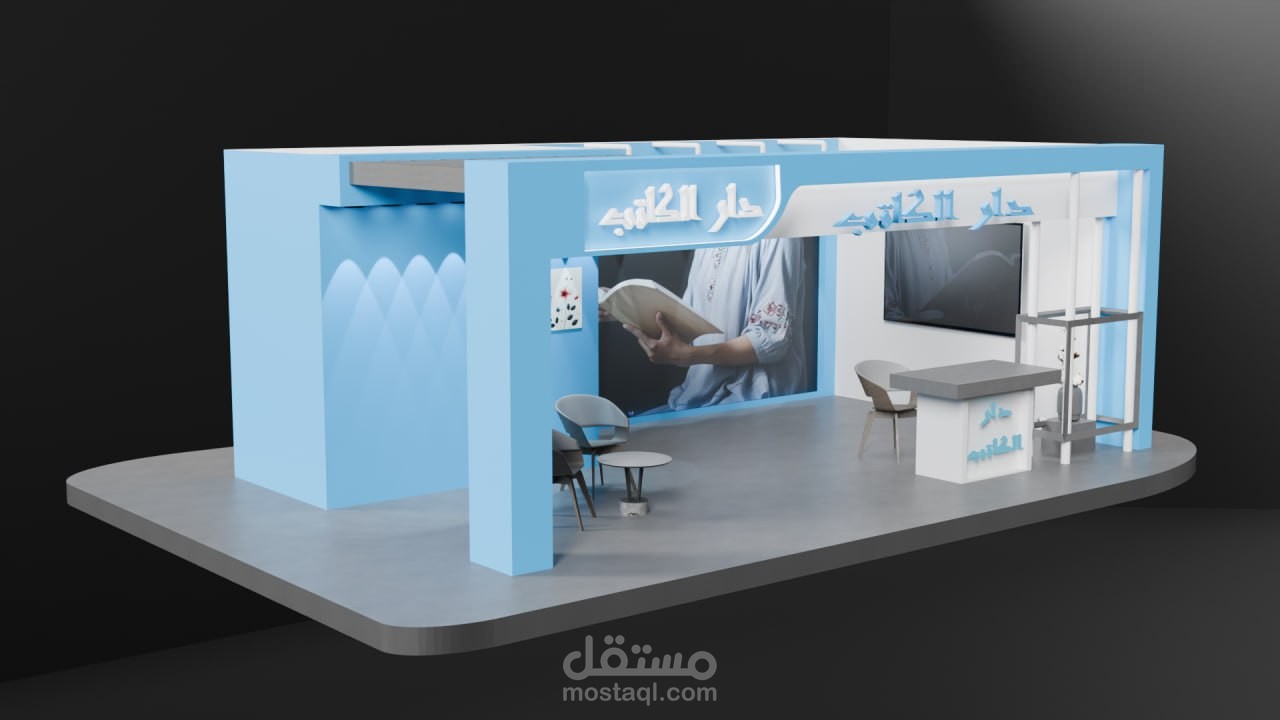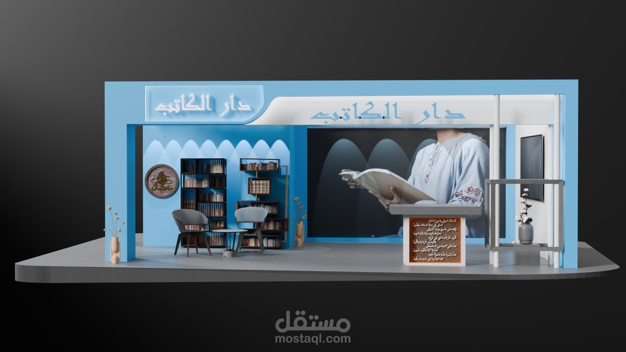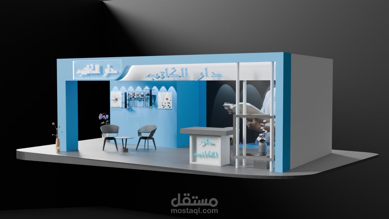 تصميم جناح عرض (Booth) احترافي لدار النشر والكتب – هوية بصرية عصرية وأنيقة